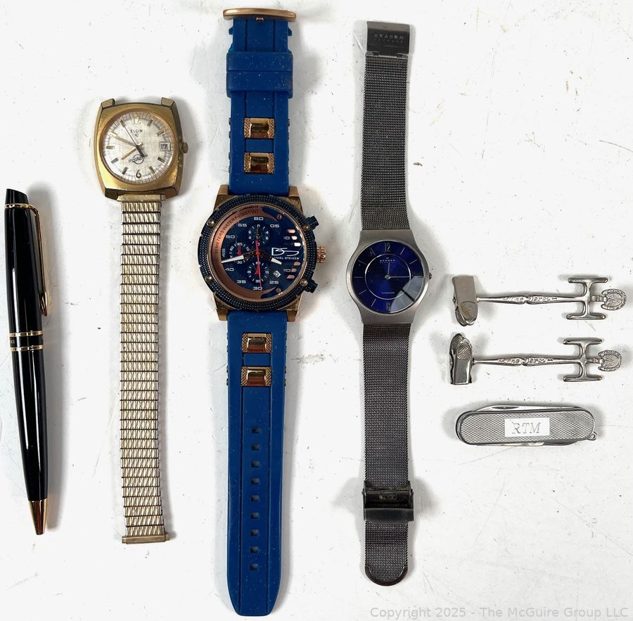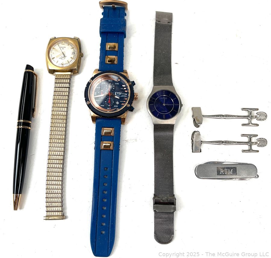 Lot #0981RM: Men's Accessories Including Waterman Pen, Cufflinks and Vintage Swiss Elgin Wristwatch.