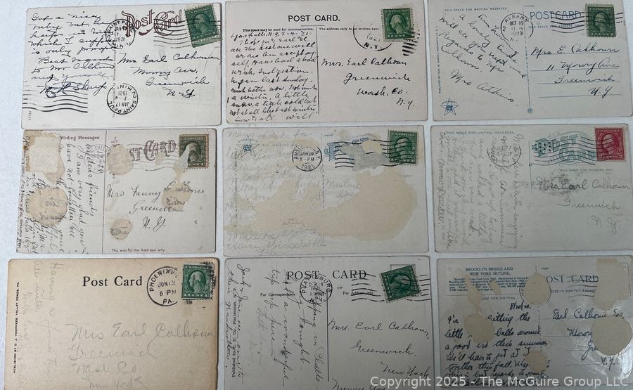 Lot #5857RM: Nine (9) Used U.S. Post Cards circa 1910-1920 with Stamps. Philately.