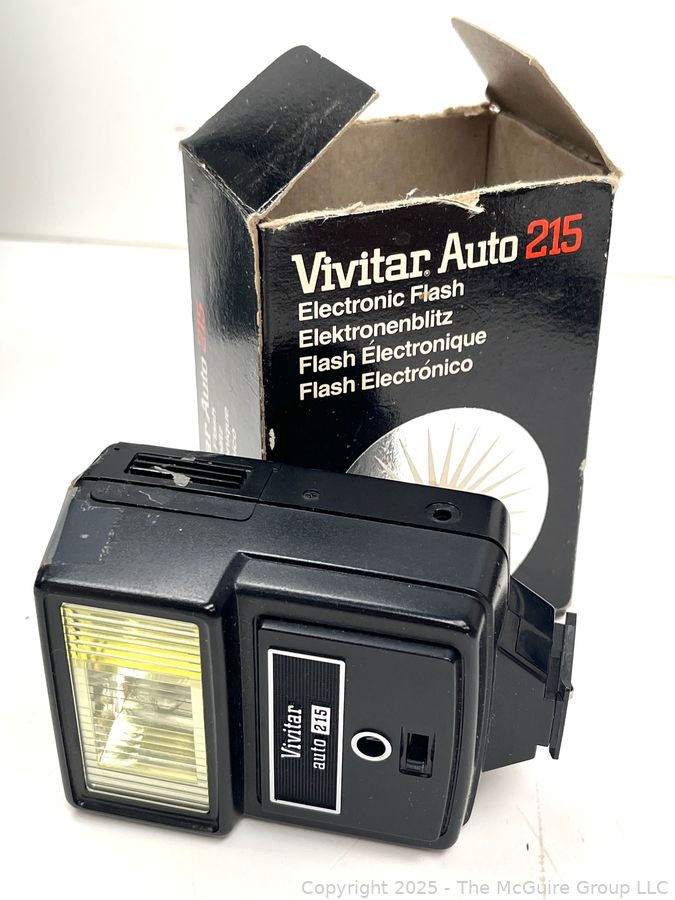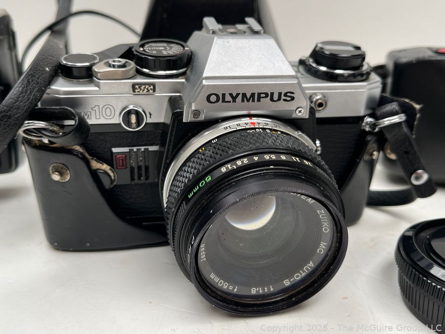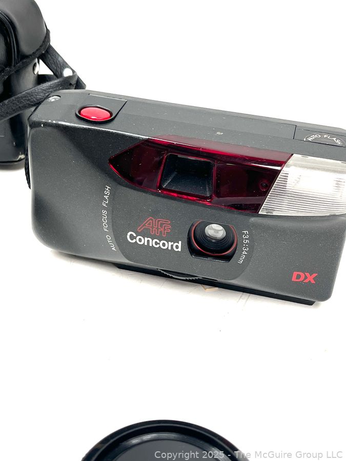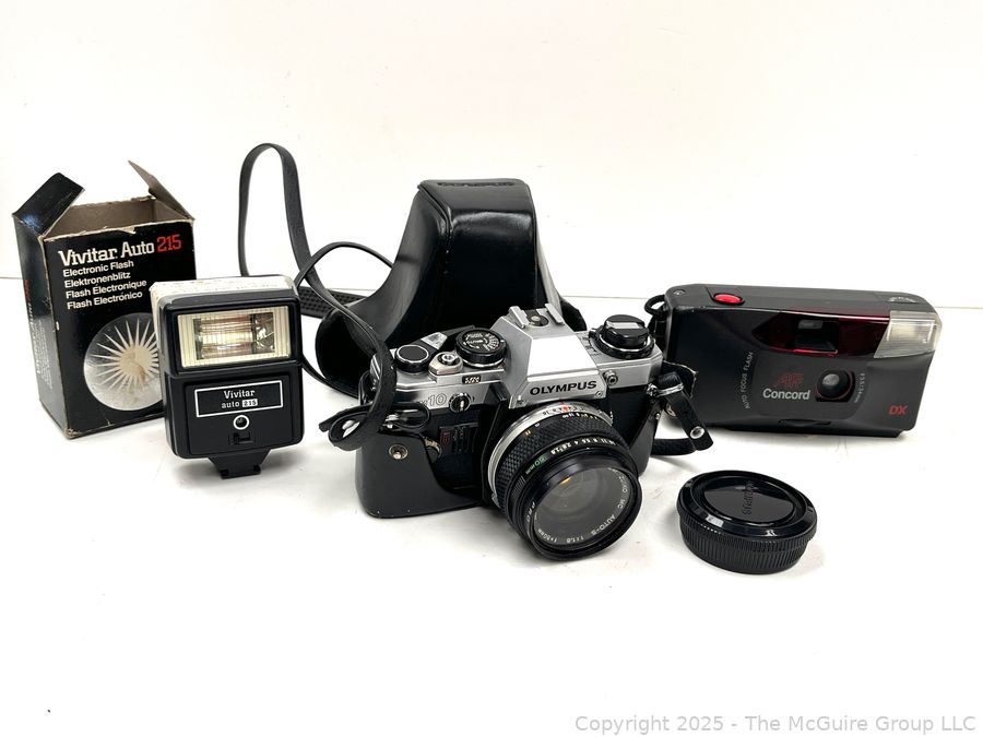 Lot #0989RM: Olympus OM-10 35mm film camera and Vivitar Flash; and Concord AFF 35mm Camera Auto Focus Flash Camera