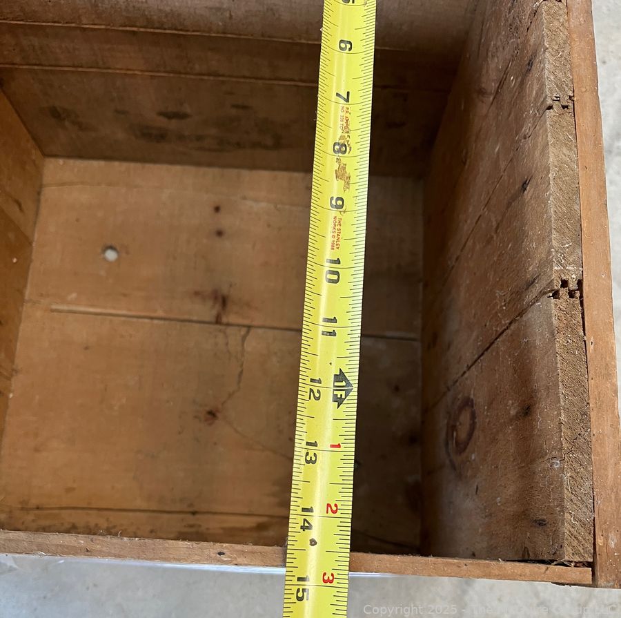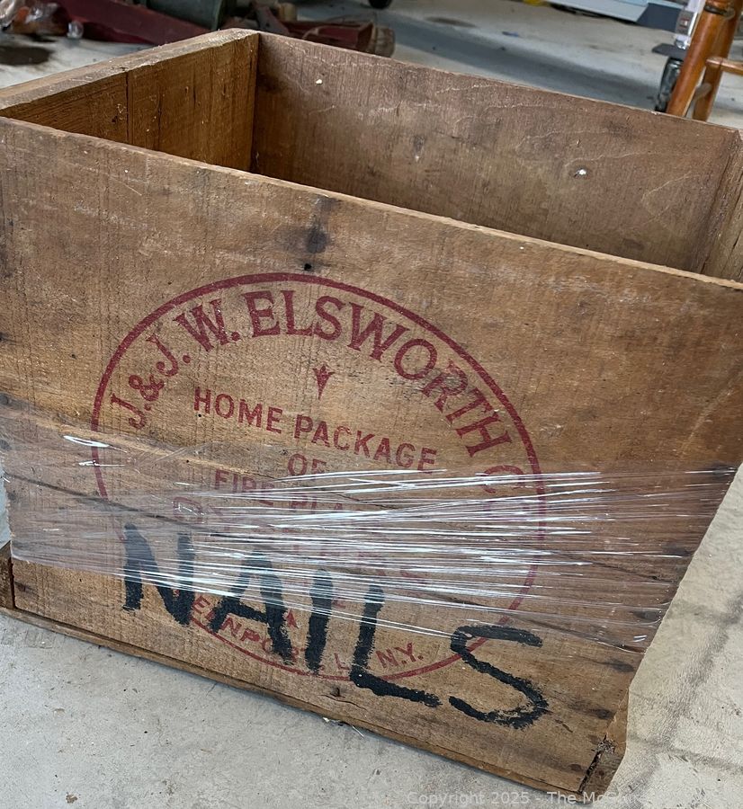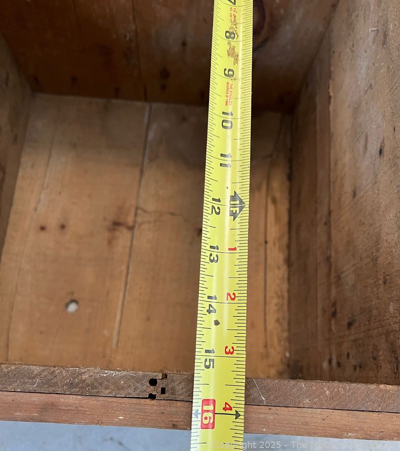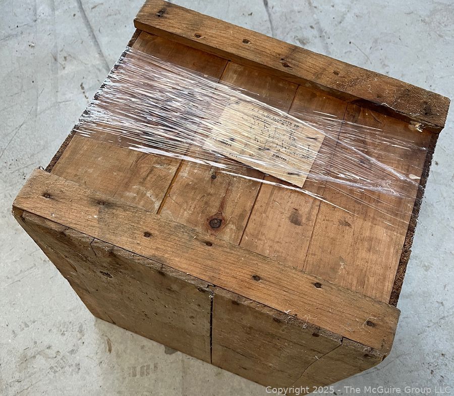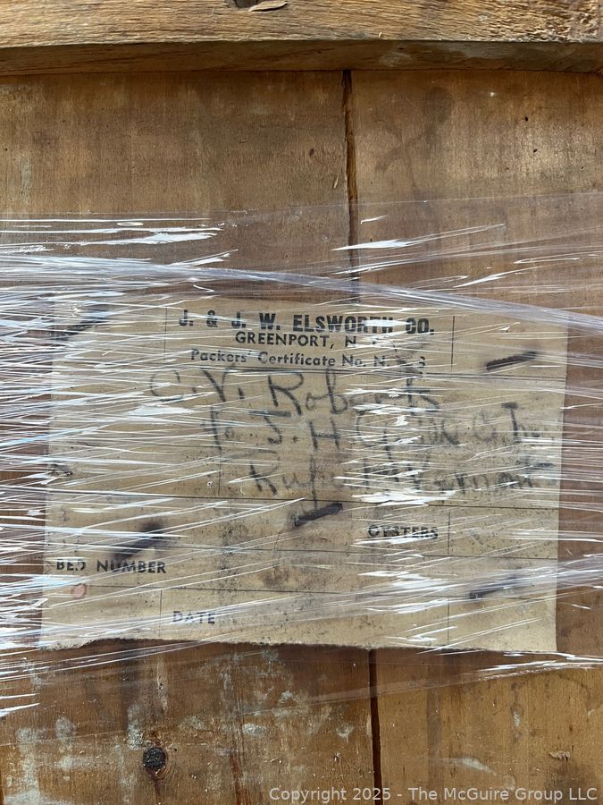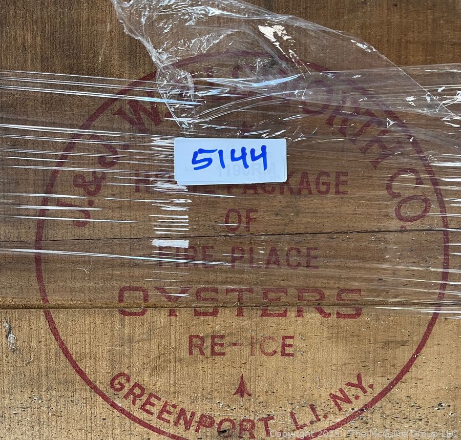 Lot #5144RM: Open Wooden Oyster Box with Stenciling Greenpoint L.I.