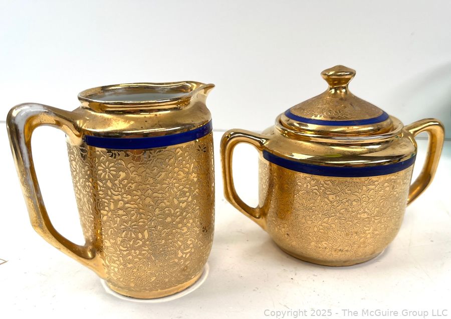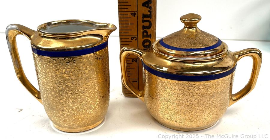 Lot #0862RM: Porcelain Gold Creamer & Covered Sugar Bowl