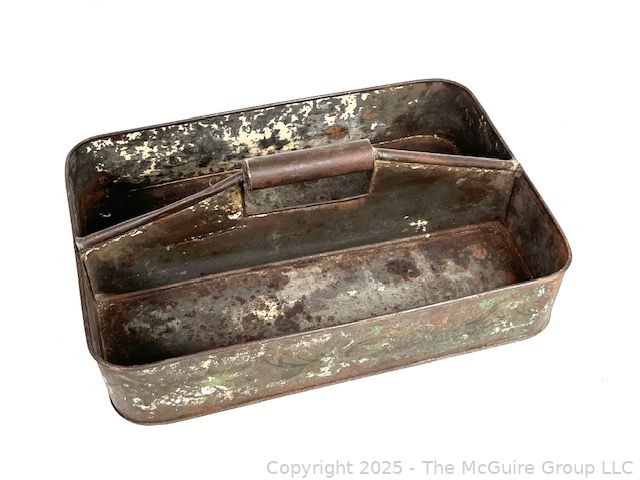 Lot #1150RM: Segmented Tin Benchtop Container w/ Handle.