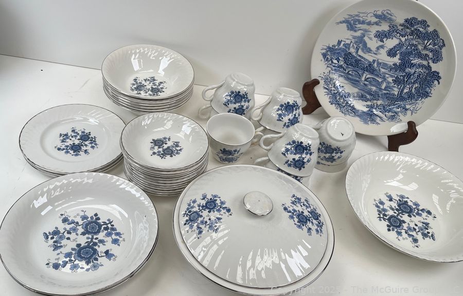 Lot #0834RM: Set of Blue and White Enoch Wedgwood Tunstall Royal Ironstone Dinnerware and Transferware Plate