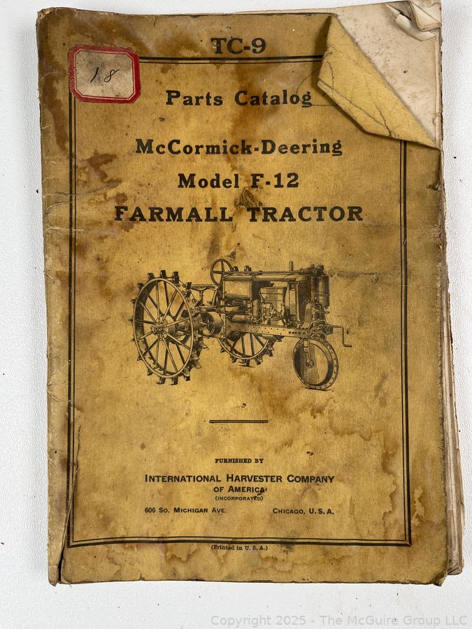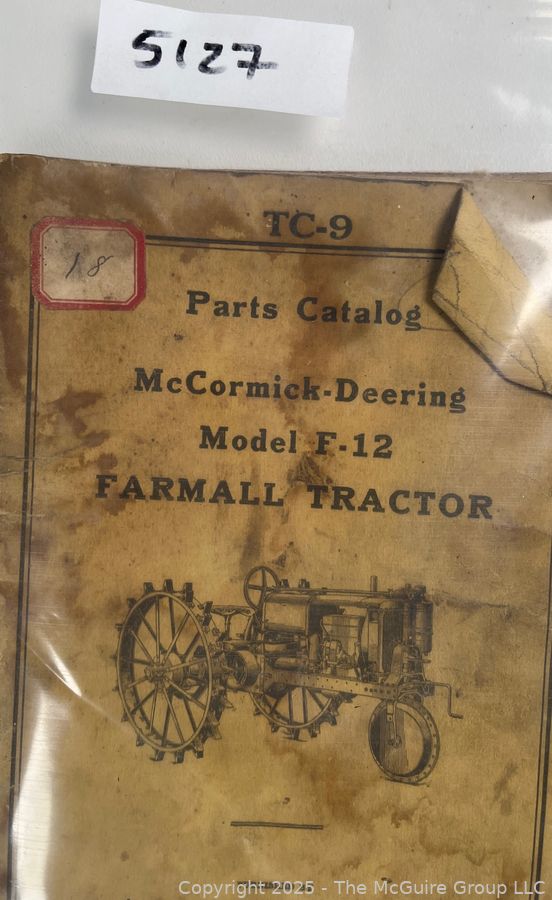 Lot #5127RM: TC-9 Parts Catalog for McCormick-Deering Model F-12 Farmall Tractor