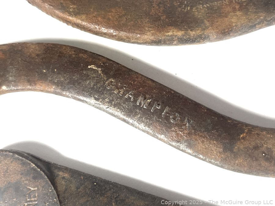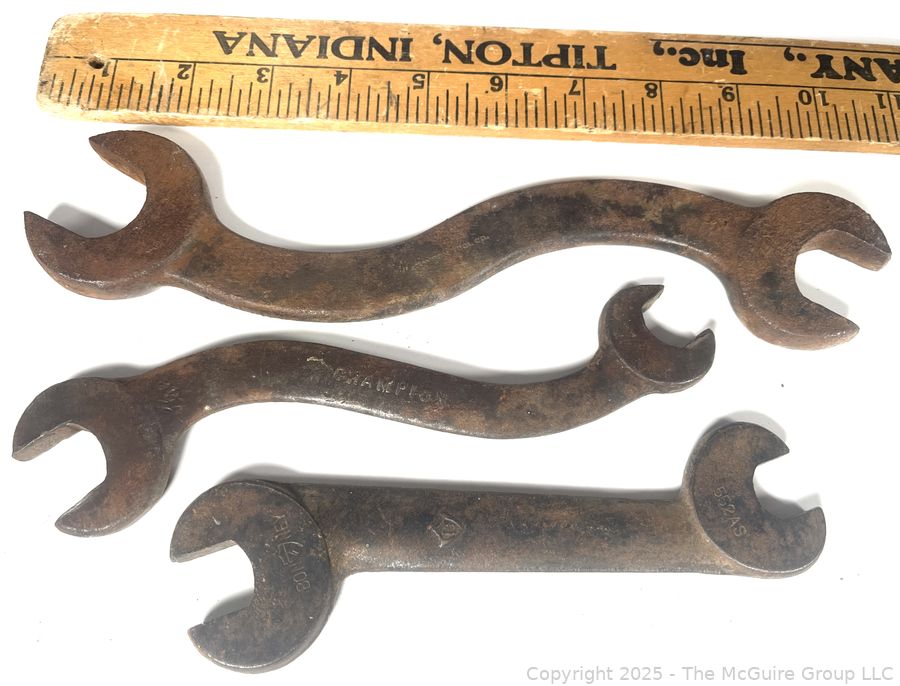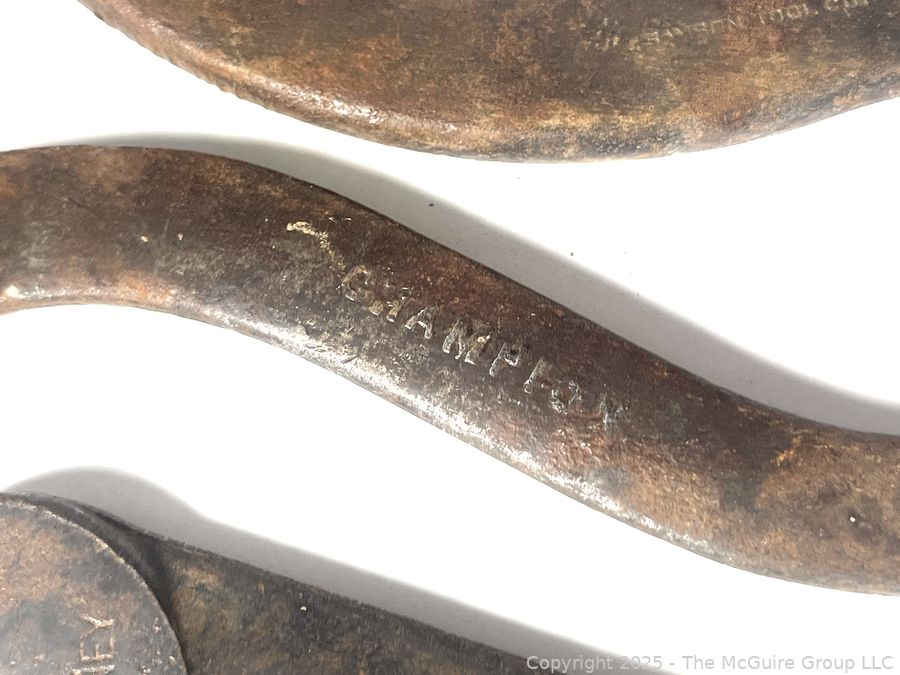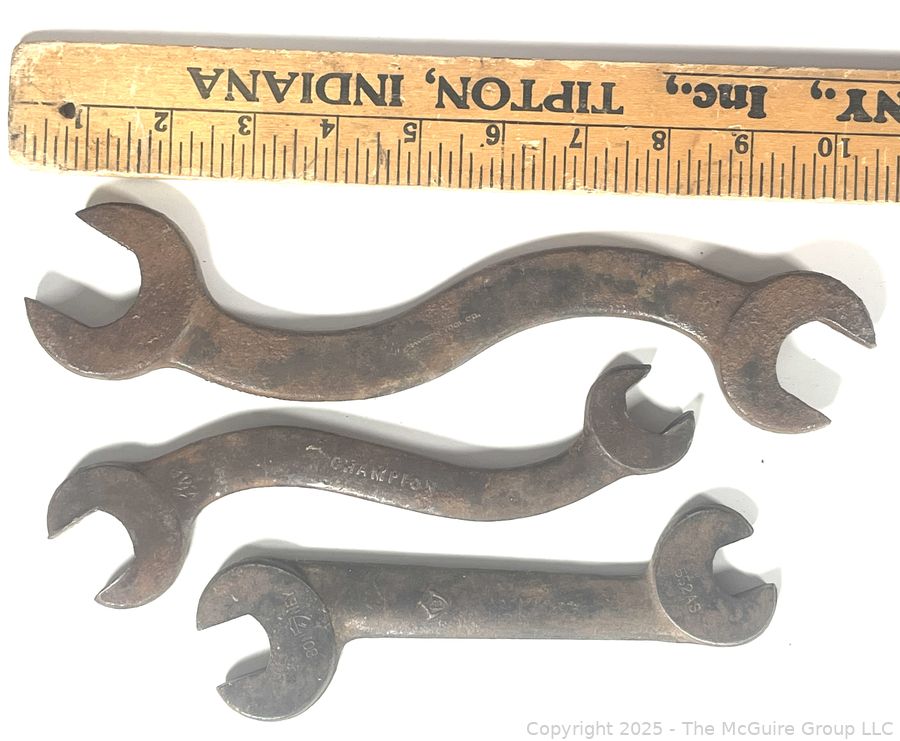 Lot #0811RM: Three (3) Open Ended Box Cut Curved Wrenches Stamped Samson Tool Co., Champion and Bonney