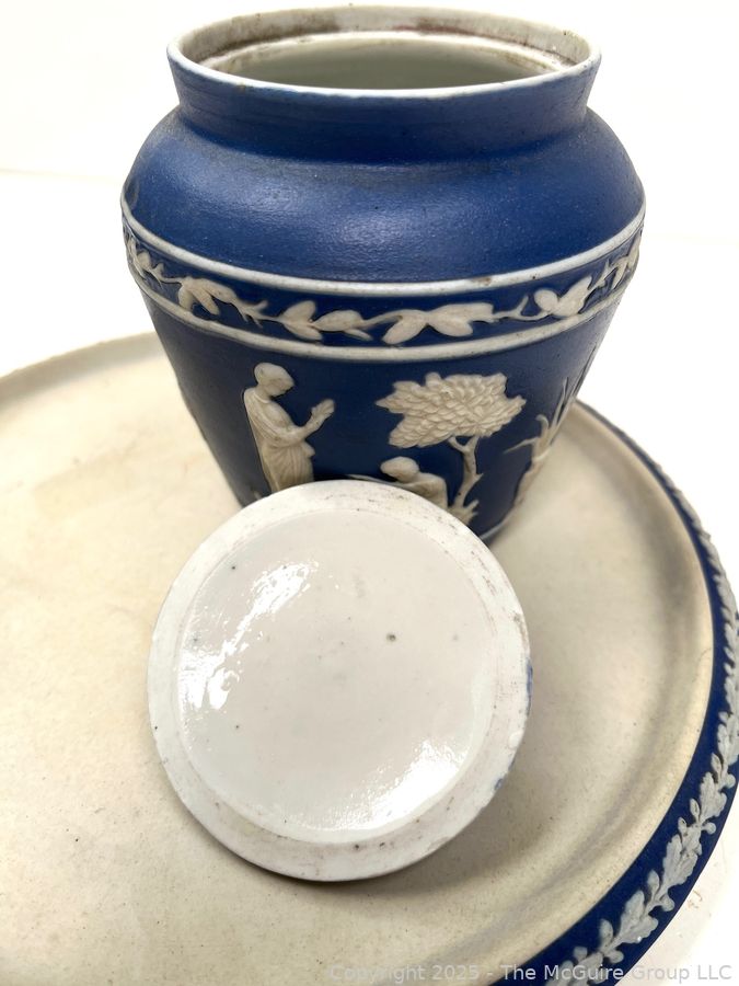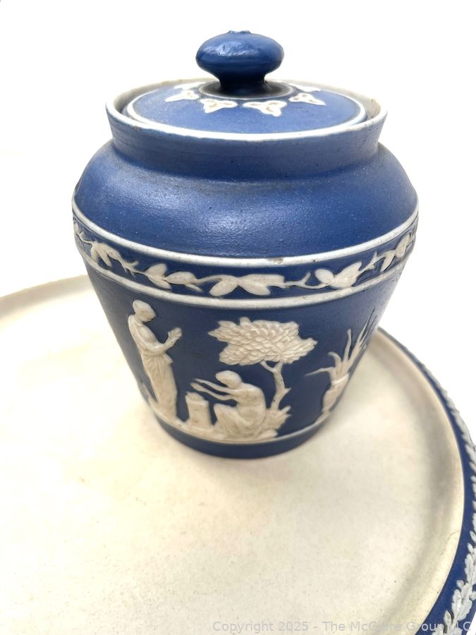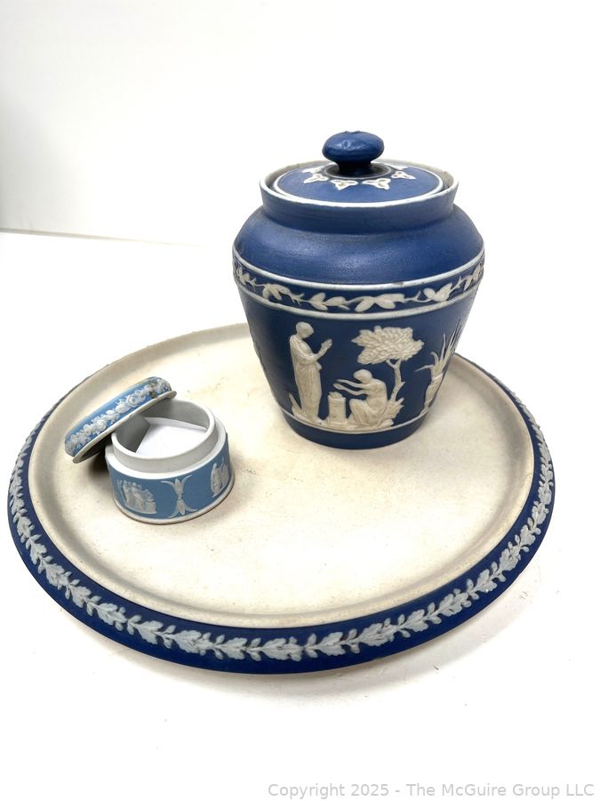 Lot #0892RM: Three (3) Pieces English Wedgwood Jasperware Jar, Trinket Box and Dish