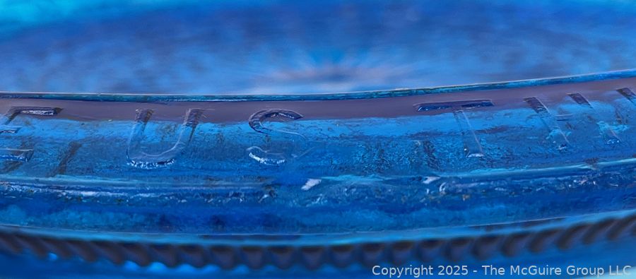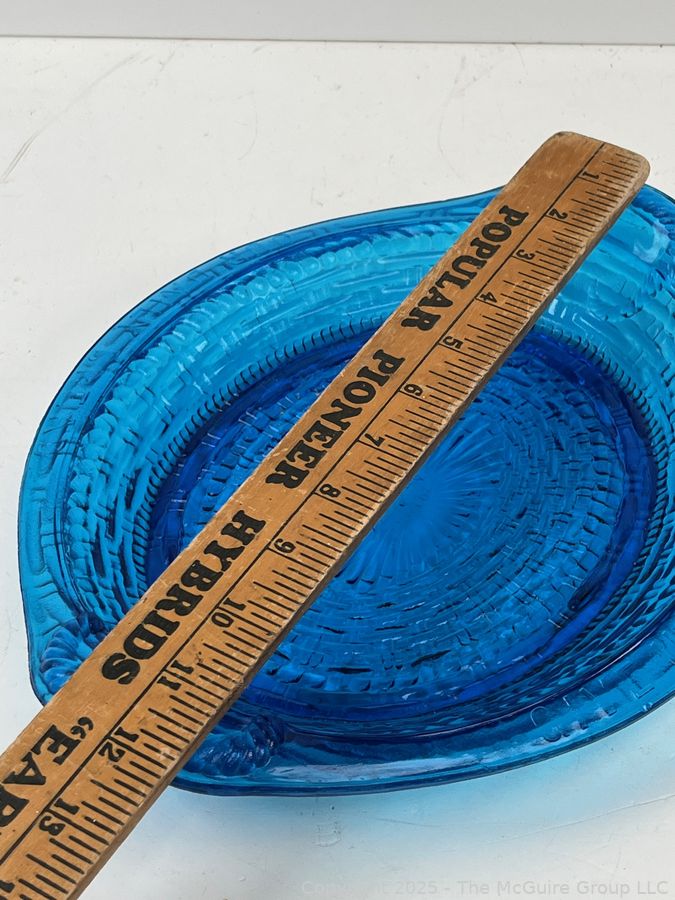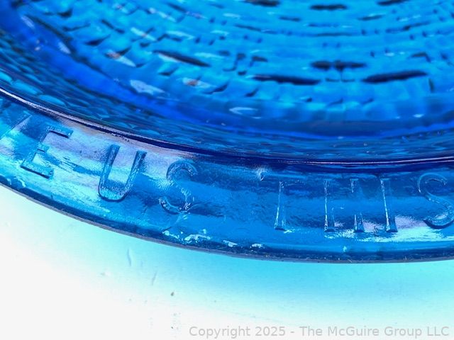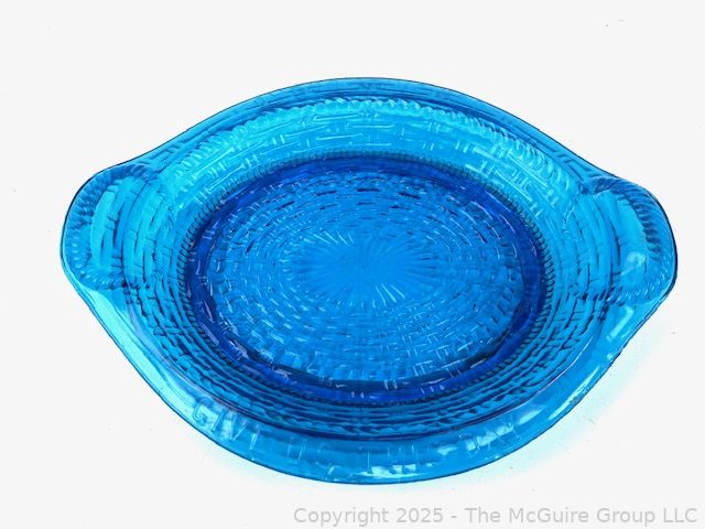 Lot #0972RM: Tiara Indiana Glass Plate Aqua Blue Tray "Give Us This Day Our Daily Bread" 10.5”L x 7”W. Note Chip