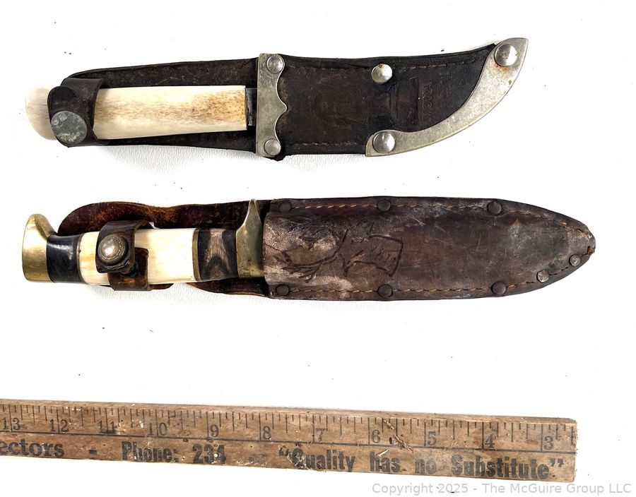 Lot #1438RM: Two (2) Hunting Knives with Sheaths (Damascus)