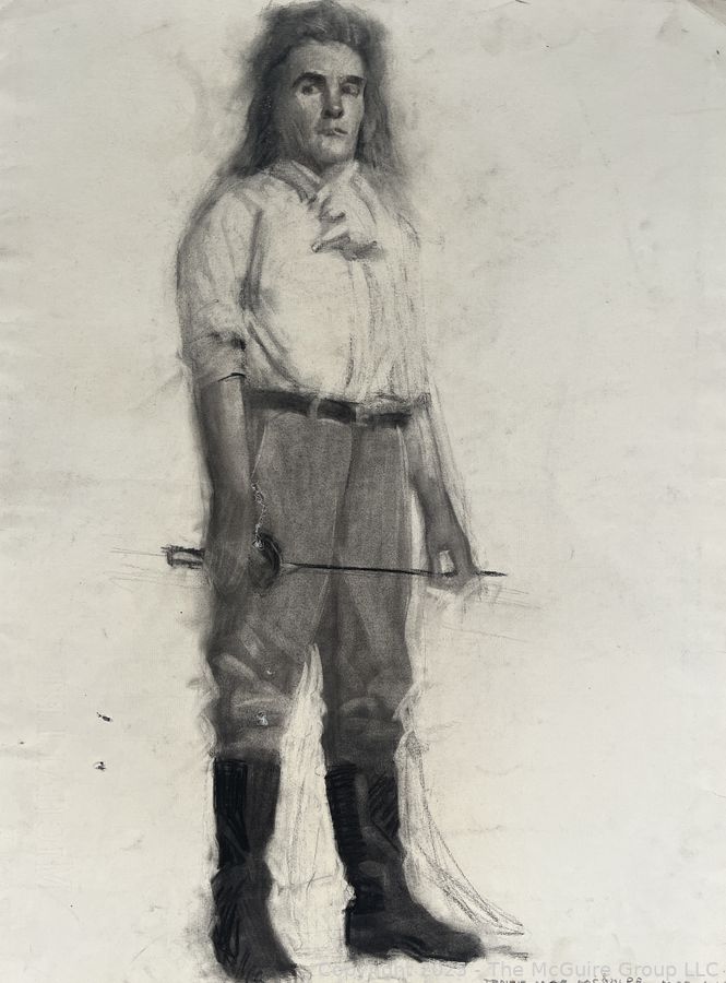 Lot #0741RM: Unframed Charcoal on Paper of Male Sitter by Jennie Mae McGuire Circa 1915