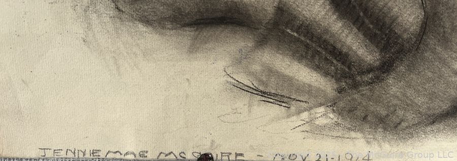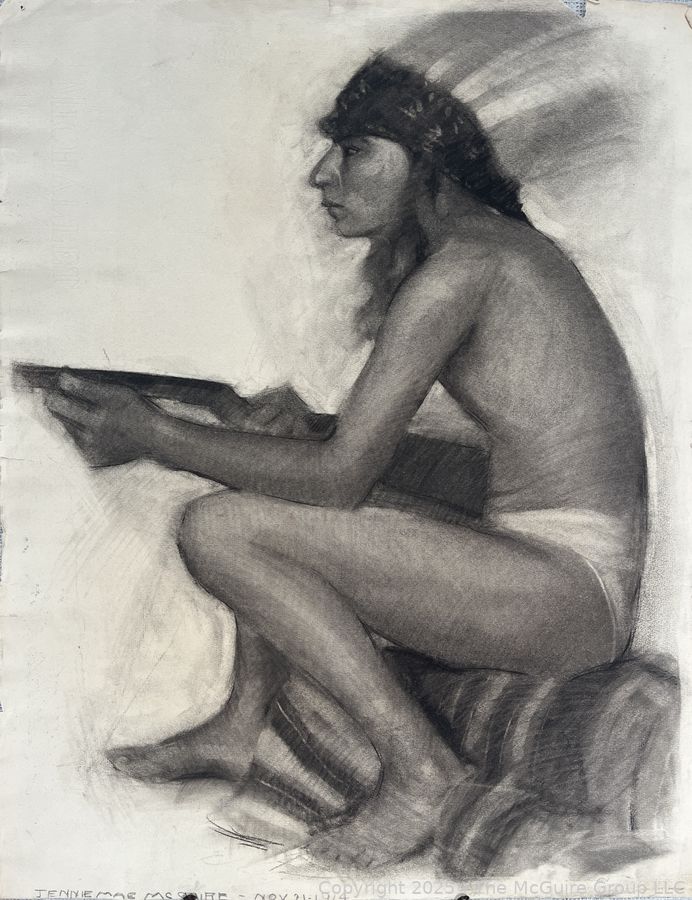Lot #0726RM: Unframed Charcoal On Paper Titled, "Seated Native American Hunter" Signed Jennie Mae McGuire. November 21, 1914