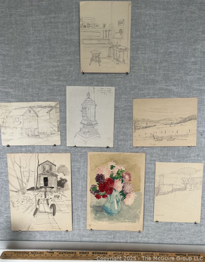 Lot #0717RM: Unframed Watercolor Sketch Book Pages by Artist Jennie Mae McGuire