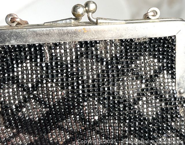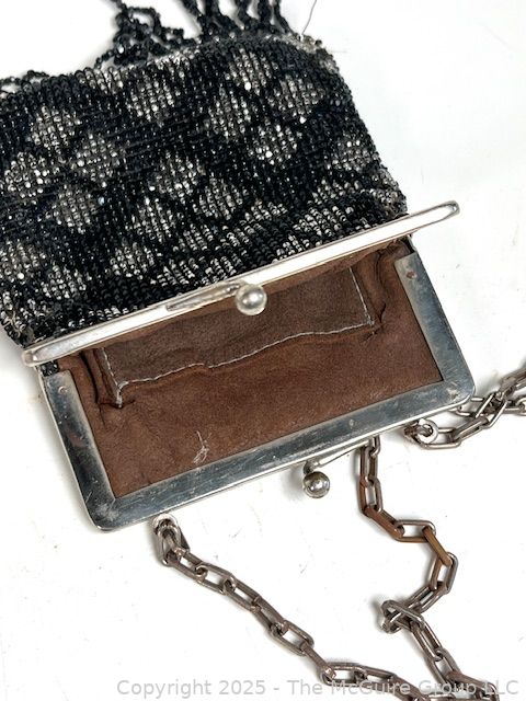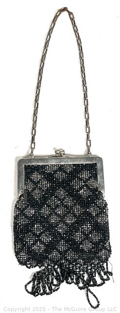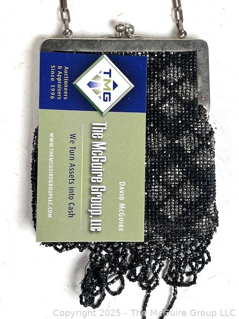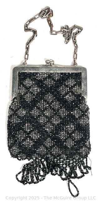 Lot #1160RM: Victorian Black & Silver Glass Beaded Handbag. Some Damage.