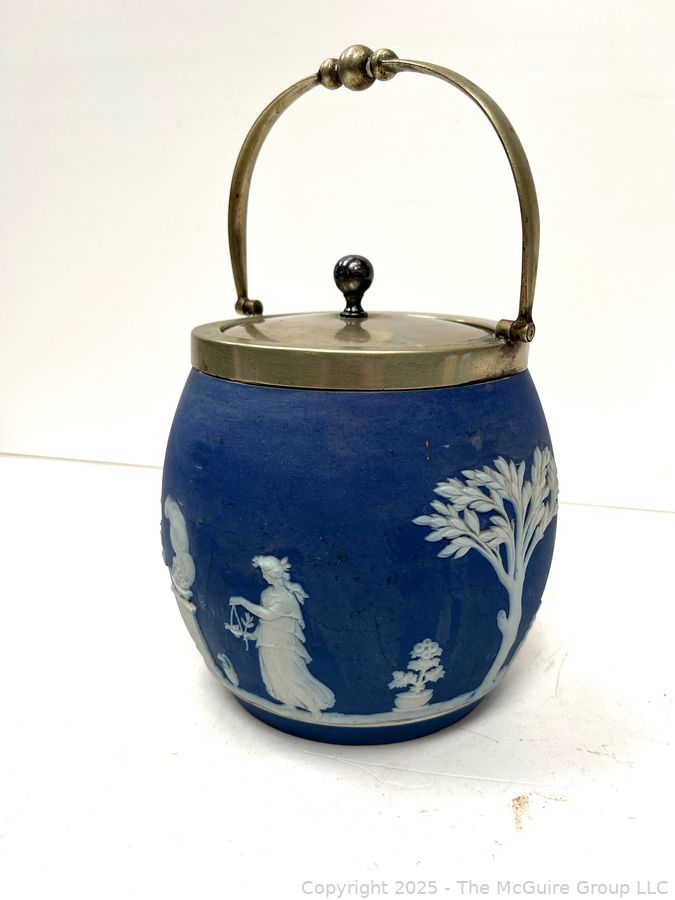 Lot #0846RM: Wedgwood Jasperware Blue Biscuit Barrel Jar