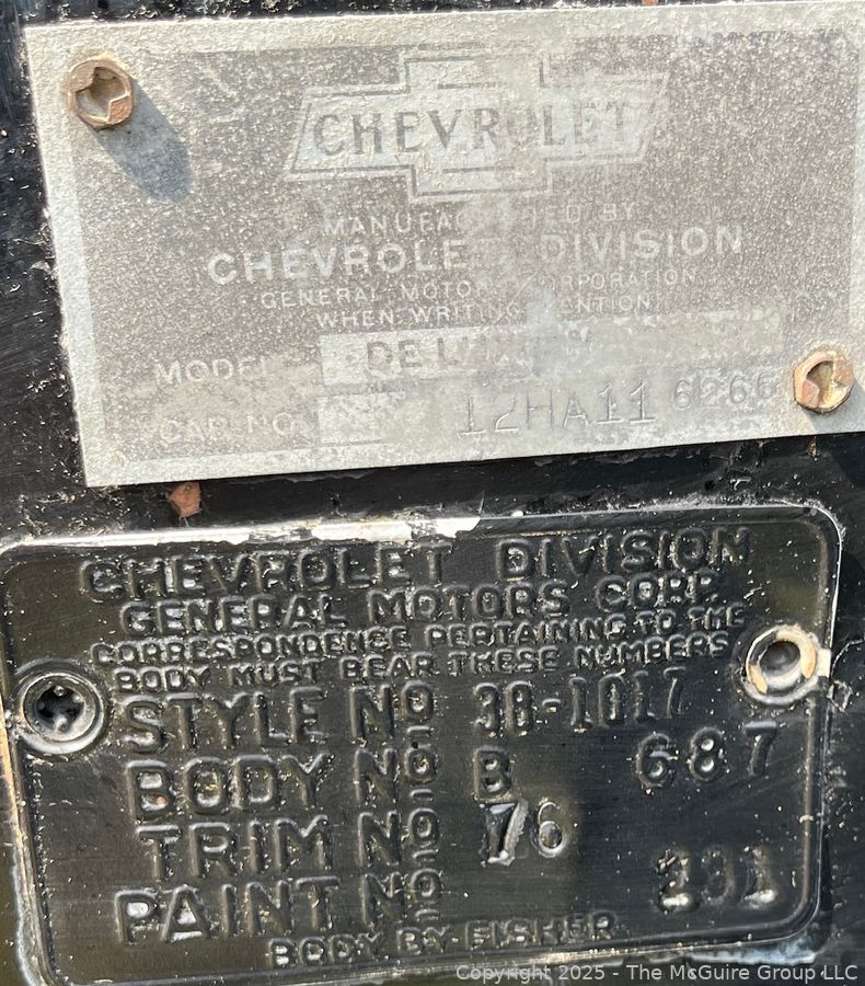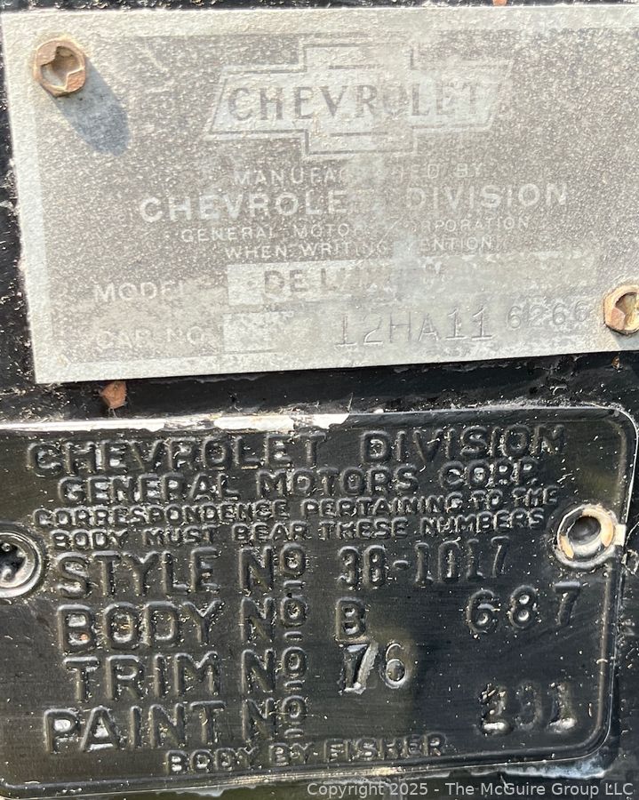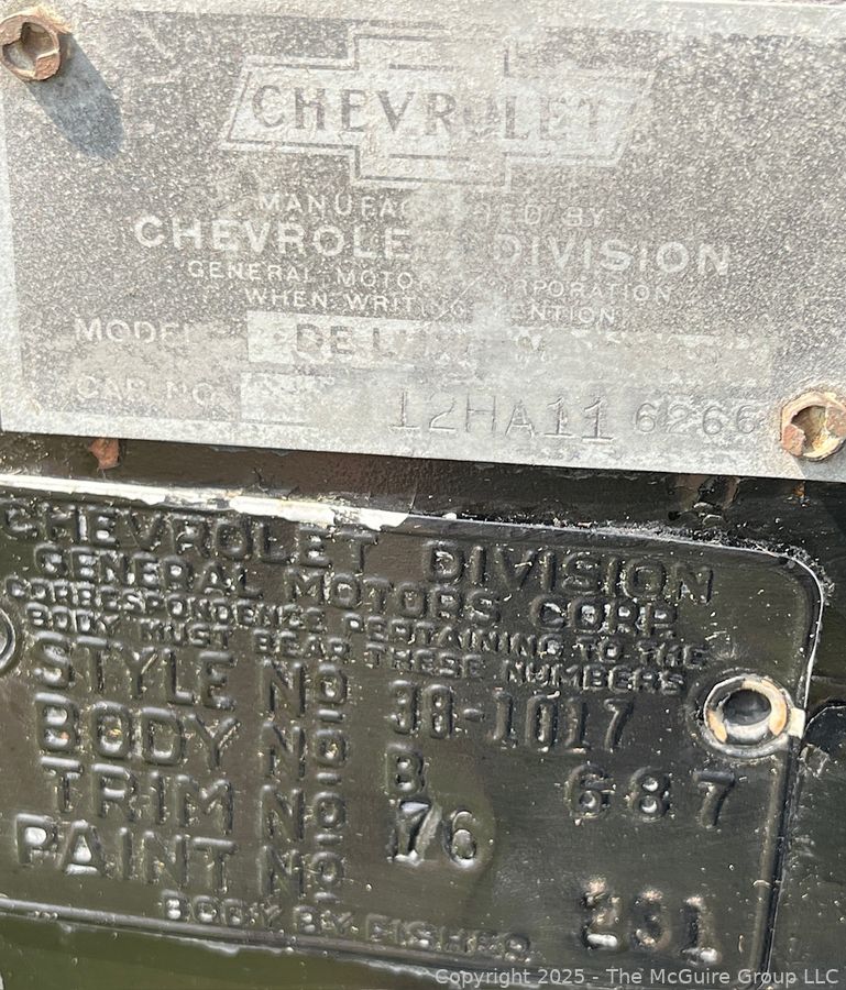 Lot #3023RM: 1938 Chevrolet Master Deluxe Capitol Two (2) Door Sedan. Body by Fisher G87, Style # 38-1017, Trim # 76 and Paint # 301. See All Photos in the Gallery.