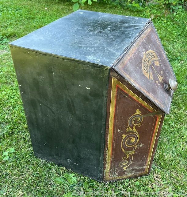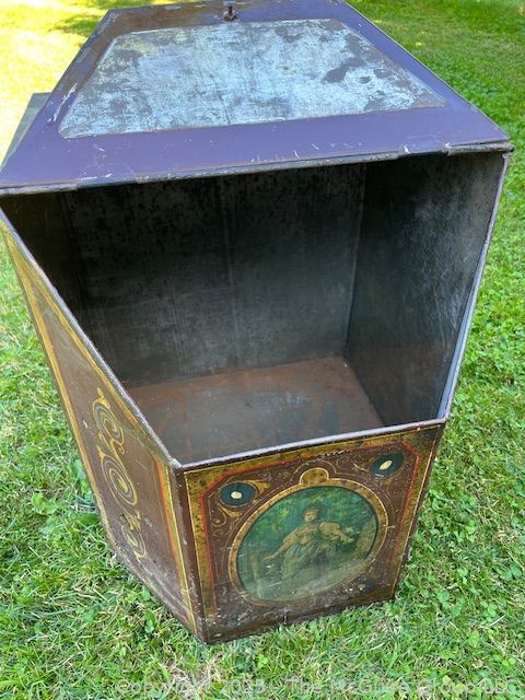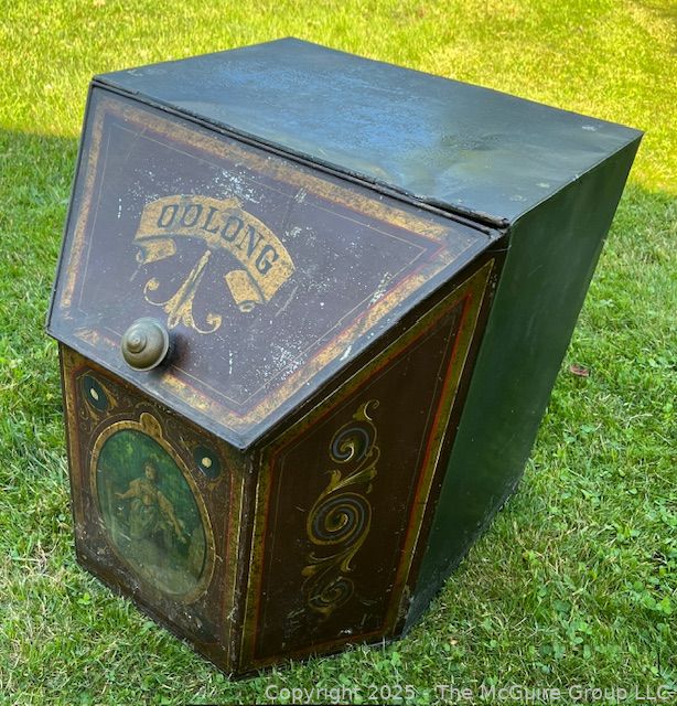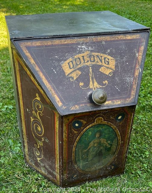 Lot #1215RM: Antique Country General Store Oolong Tea Tin Bin Beautiful Graphics 23x13"
