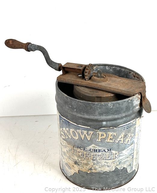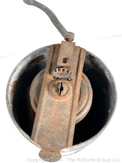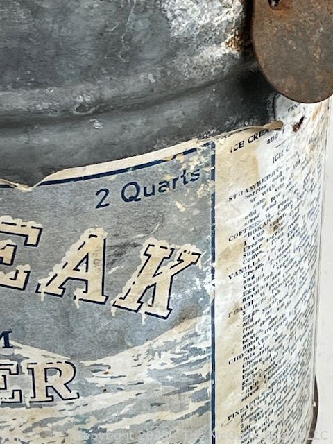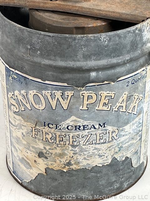 Lot #1175RM: Antique Galvanized Metal Ice Cream Maker by SNOW PEAK with Hand Crank
