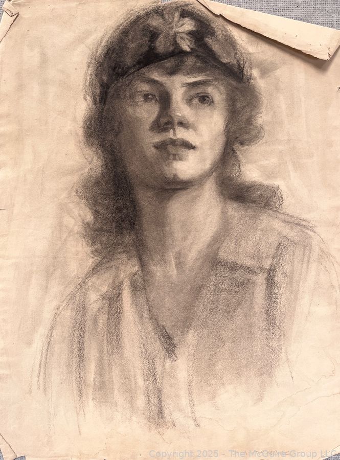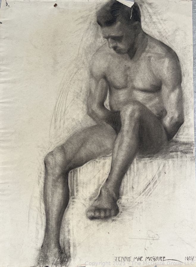 Lot #5018RM: Charcoal of Male Nude Sitting, Female Portrait on Verso. Jennie Mae McGuire (WAS 743)br>