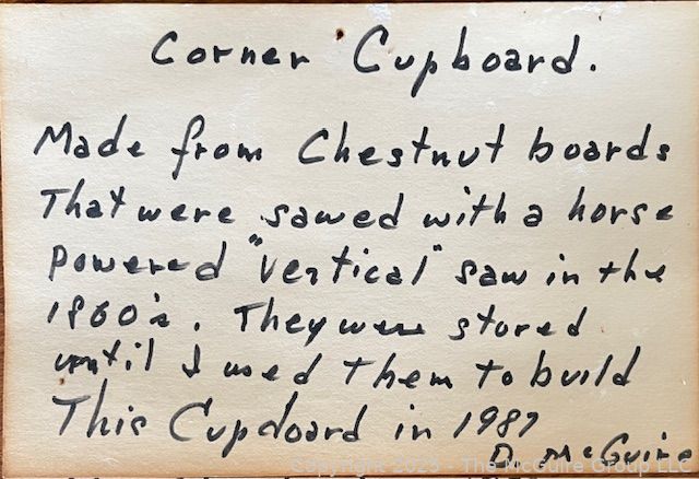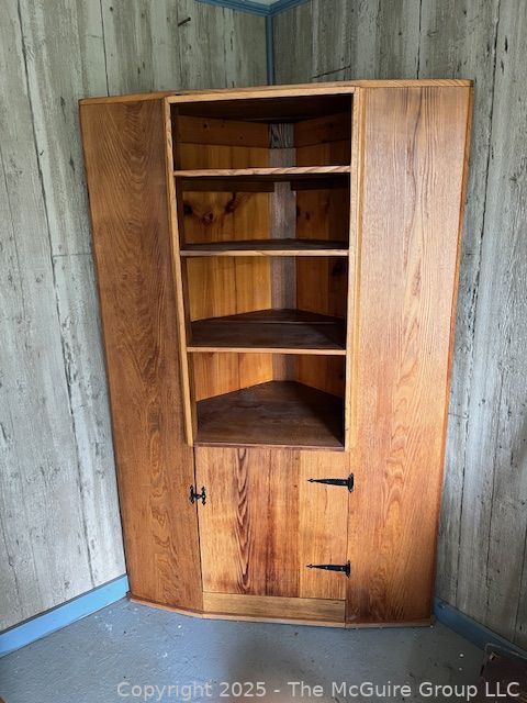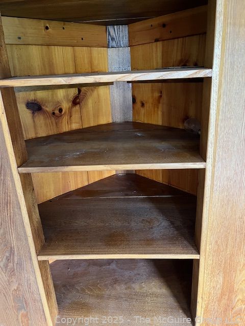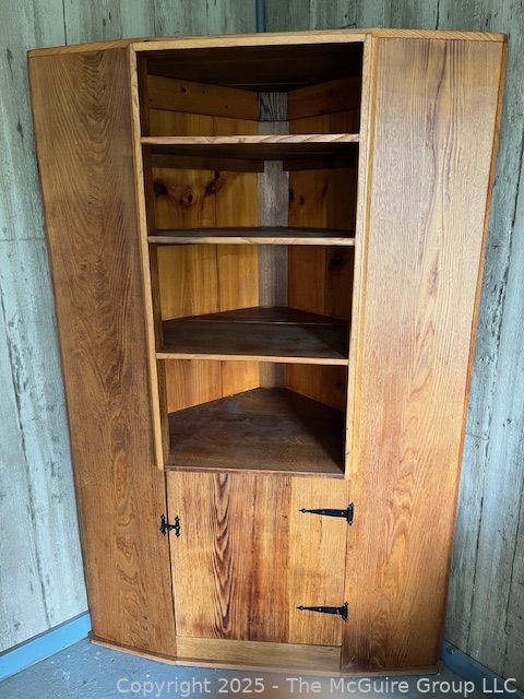 Lot #4026RM: Chestnut Corner Cupboard. Measures 48"W at Front, 75" Tall, 27" Deep at Center and 36" Each Side at Back