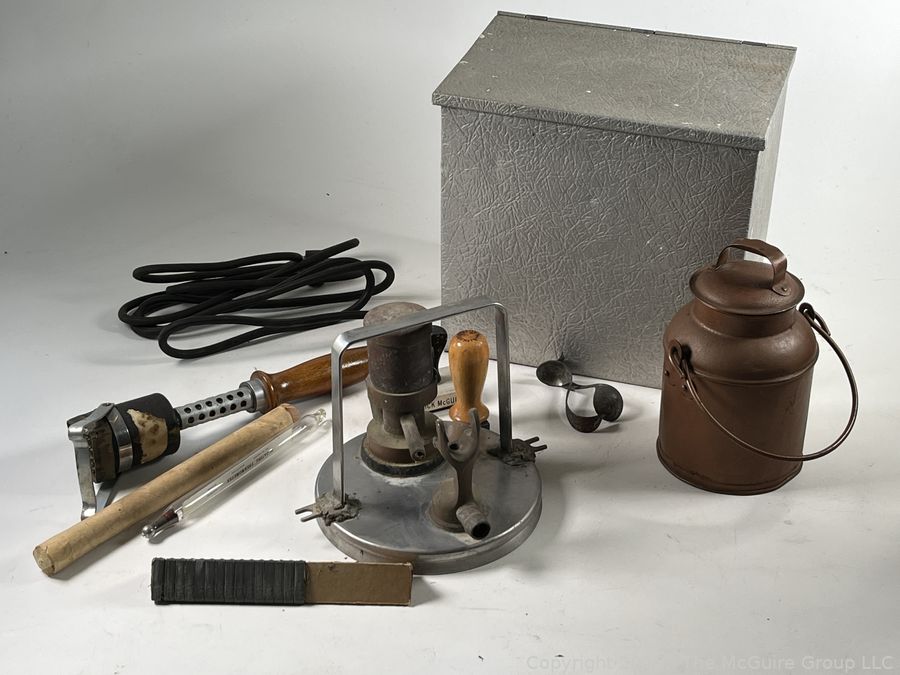 Lot #1363RM: Eclectic Grouping Including Insulated Milk Box and Electric Branding Tool.