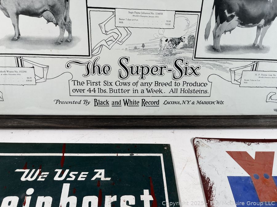Lot #1375RM: Framed Cow Breed Poster and Two (2) Dairy Signs - Steinhorst and Yankee Milk
