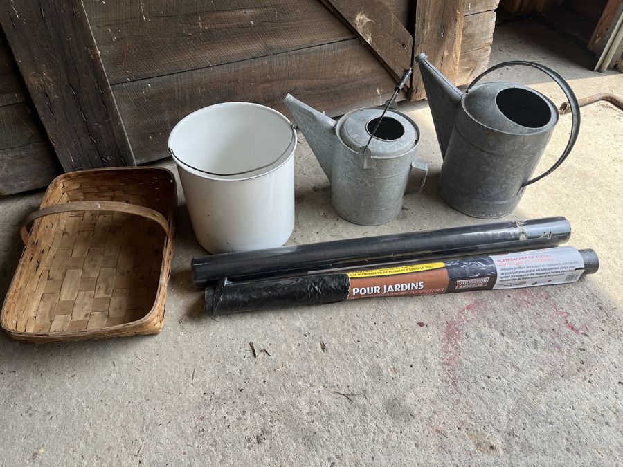 Lot #1398RM: Garden Supplies and Tools Including Galvanized Watering Cans