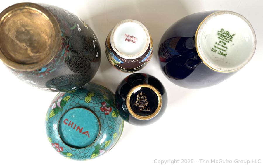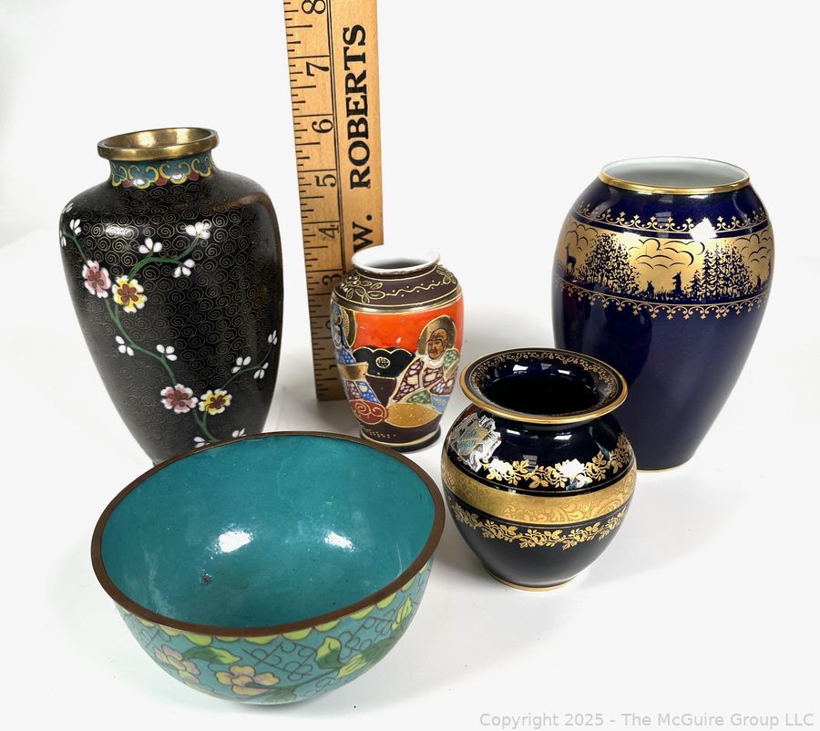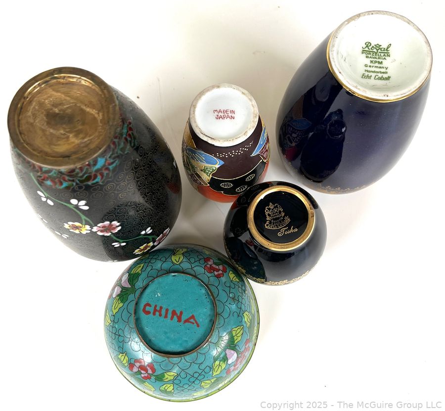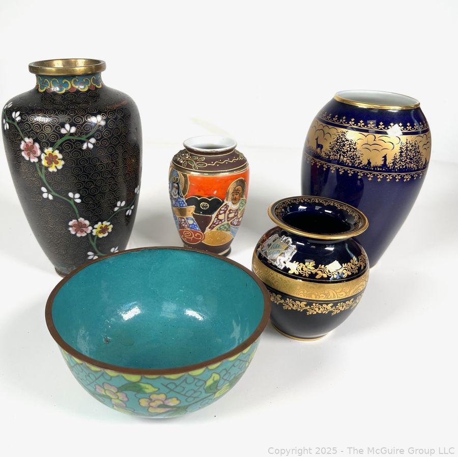 Lot #5204RM: Group Including Japanese Cloisonne Vase and Bowl, Moriage Satsuma Vase and Royal Porzellan Bavaria Porcelain Vases