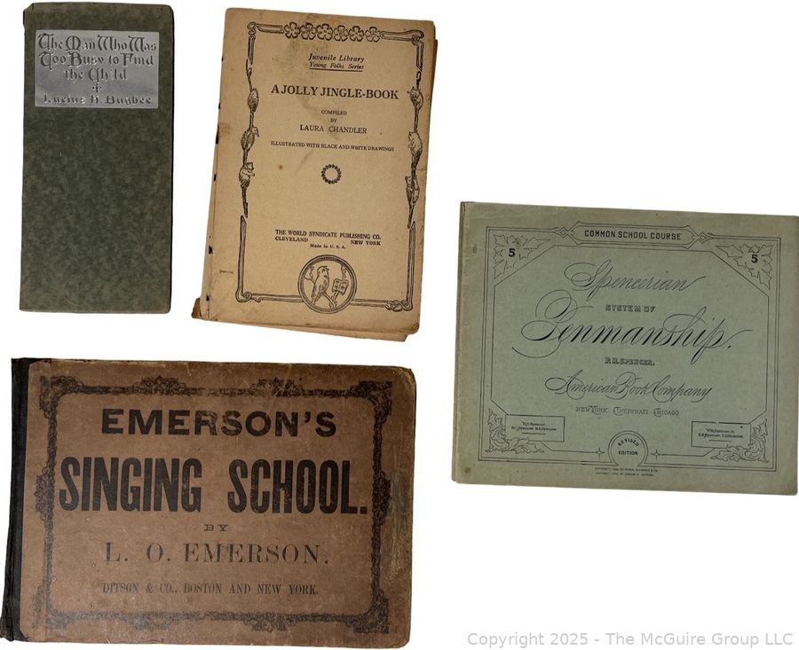 Lot #5066RM: Grouping of Books Including The Man Who Was Too Busy to Find the Child by Busbee, A Jolly Jingle Book by Laura Chandler, The Common School Course in Penmanship and Emersons Singing School