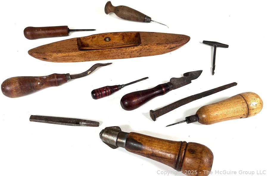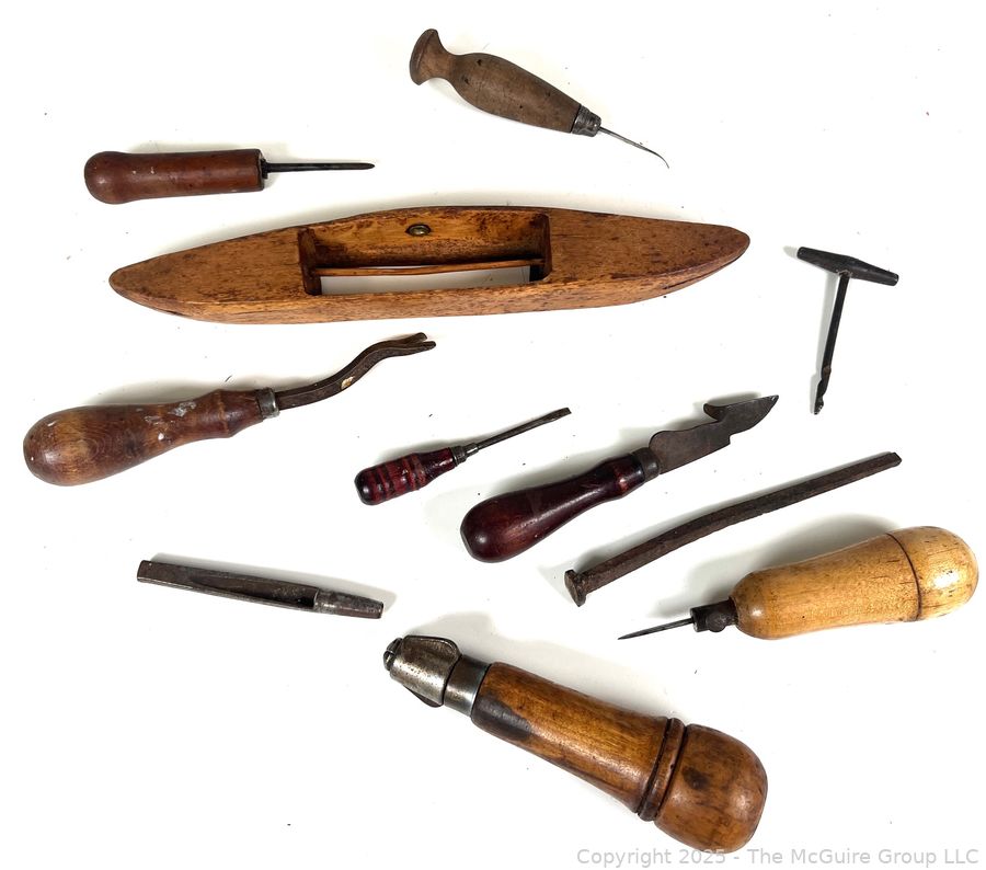 Lot #5261RM: Grouping of Tools Specific to Weavers and Textile Arts, Including a Shuttlecock