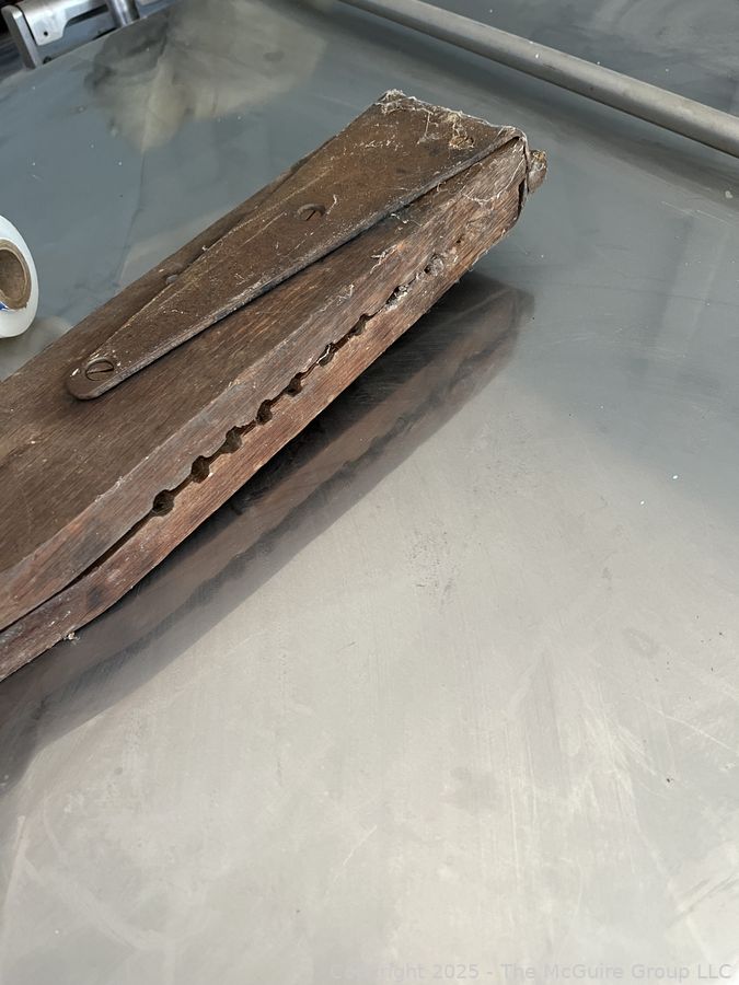 Lot #1367RM: Hinged 17" Primitive Carved Wooden Mangle Board Used to Smooth Fabrics After Washing