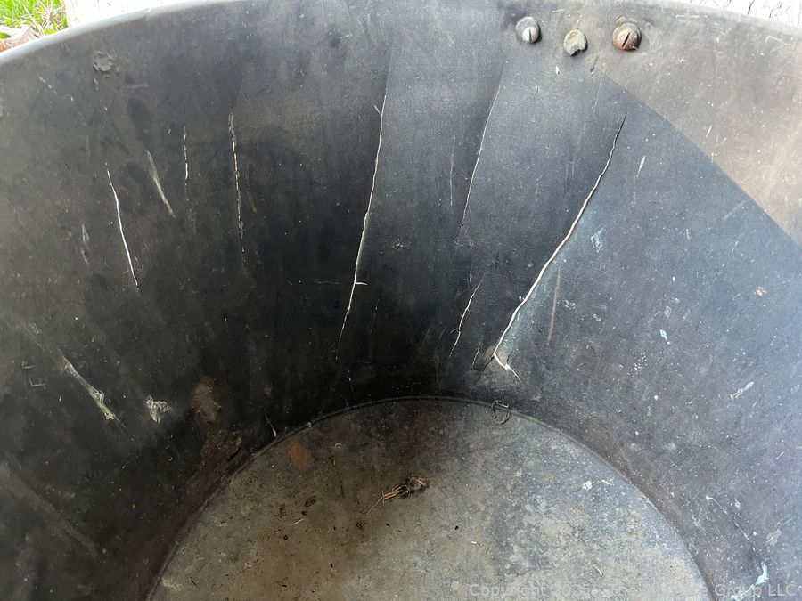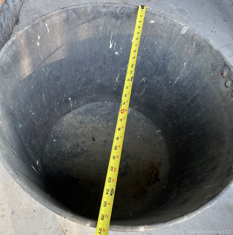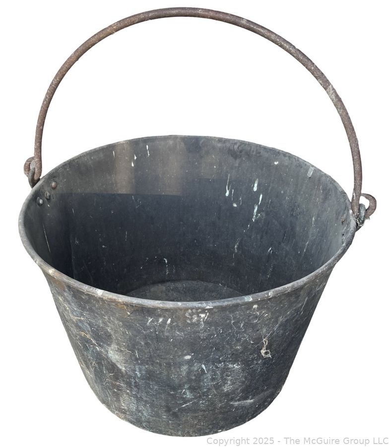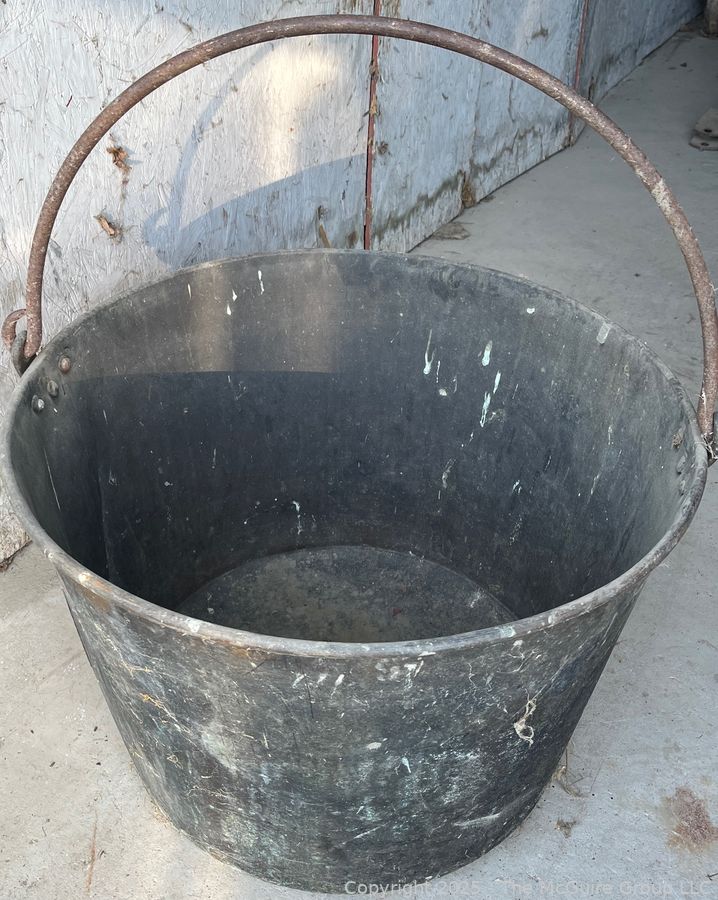 Lot #3002RM: Large Brass Kettle w/ Forged Handle. Note Damage in Photos.