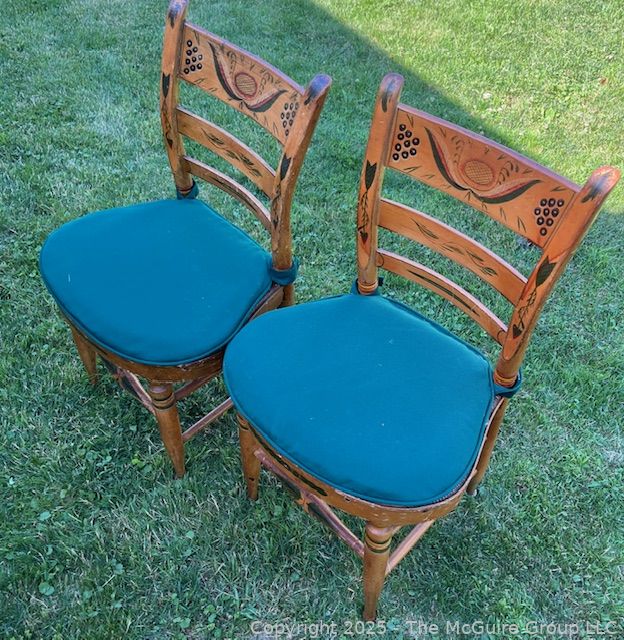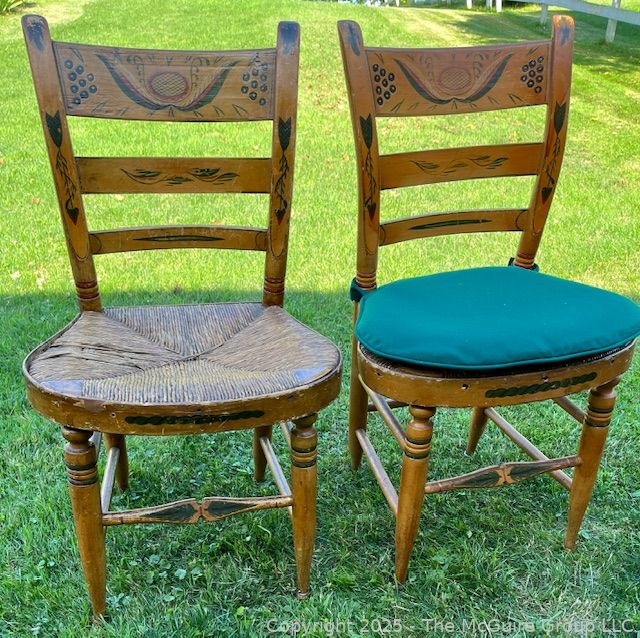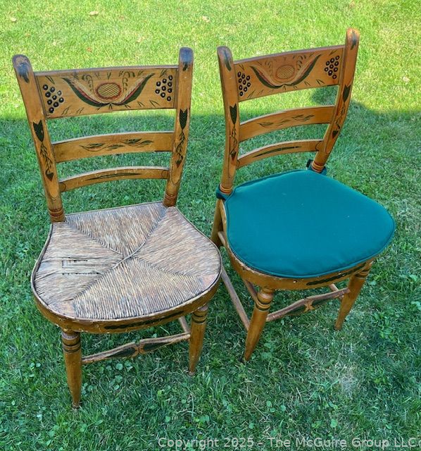 Lot #1218RM: Pair of Hand Painted Side Chairs with Rope Seats
