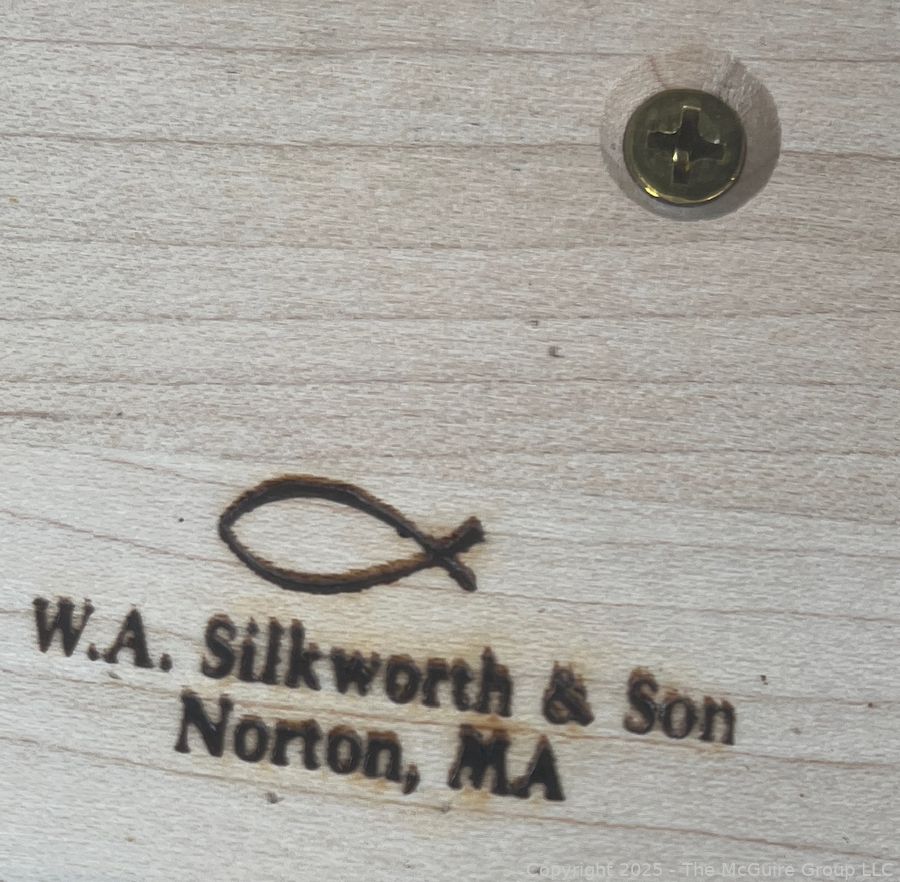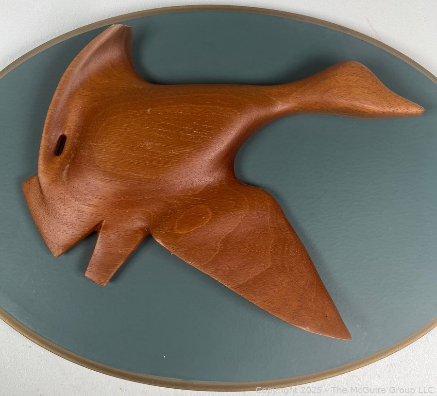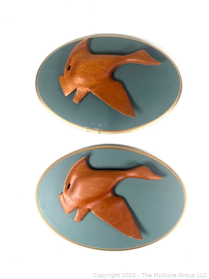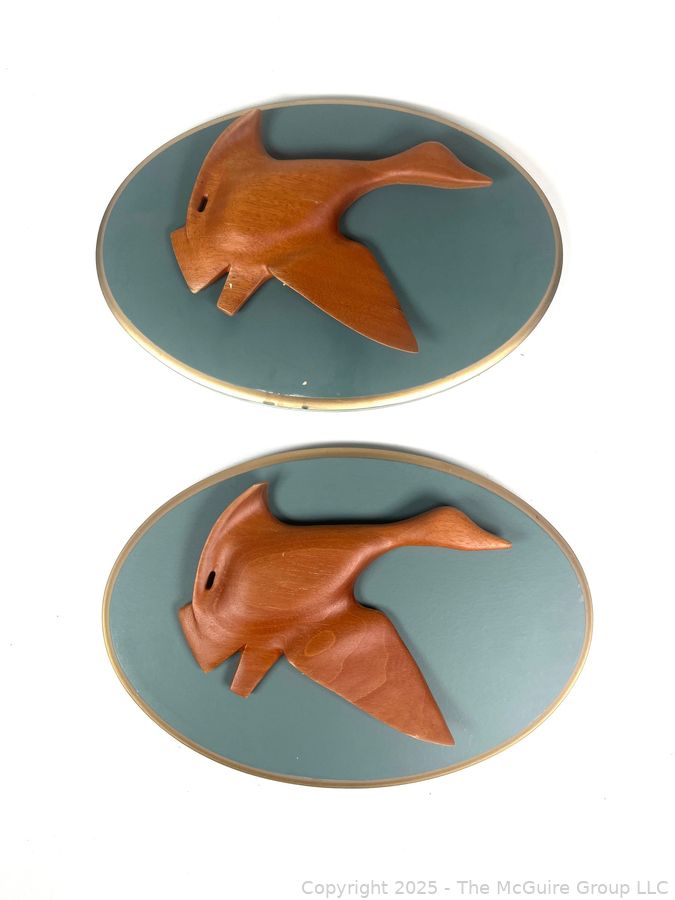 Lot #1174RMO: Pair of Wall Mount Geese in Flight Wood Carvings. Made by W.A. Silkworth & Son, Norton, MA