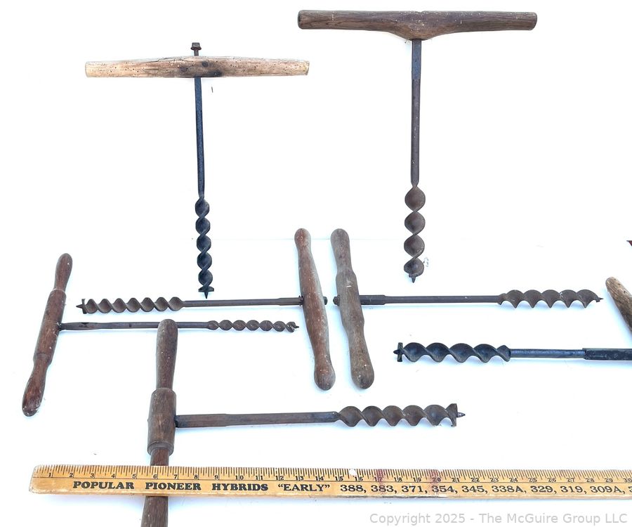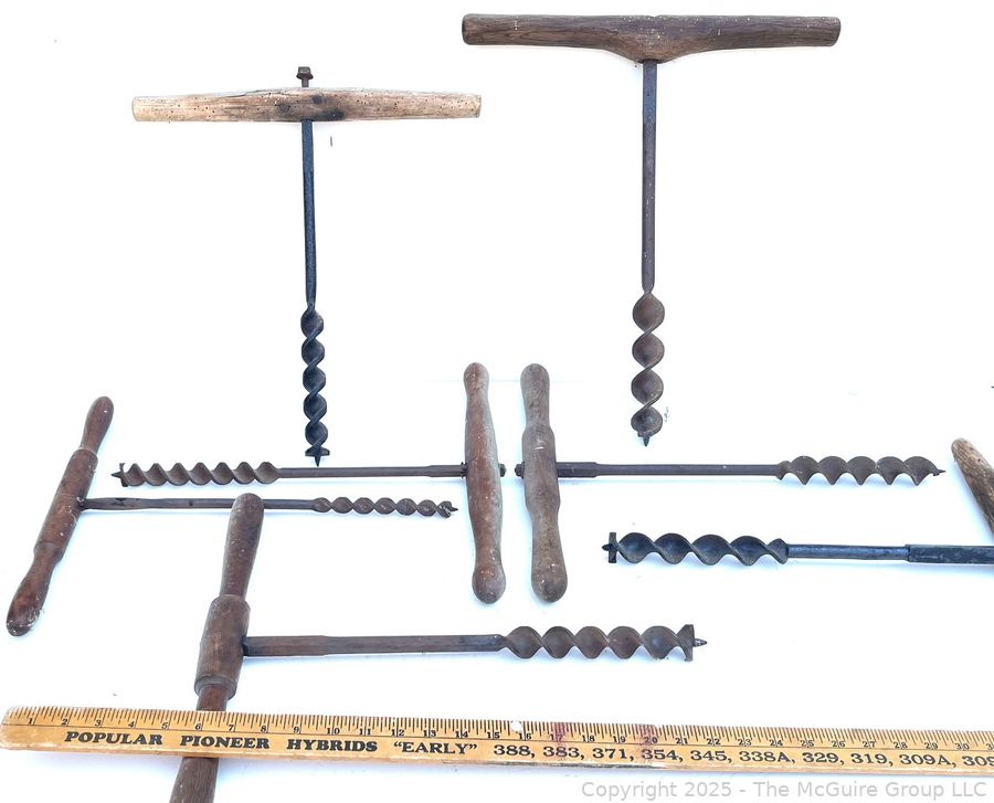 Lot #1242RM: Selection of Seven (7) T-bar Hand Augers of Various Diameters
