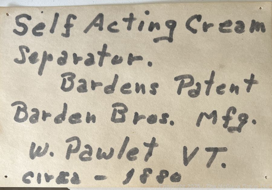 Lot #1373RM: Self-Acting Cream Separator Bardens Patent 1880
