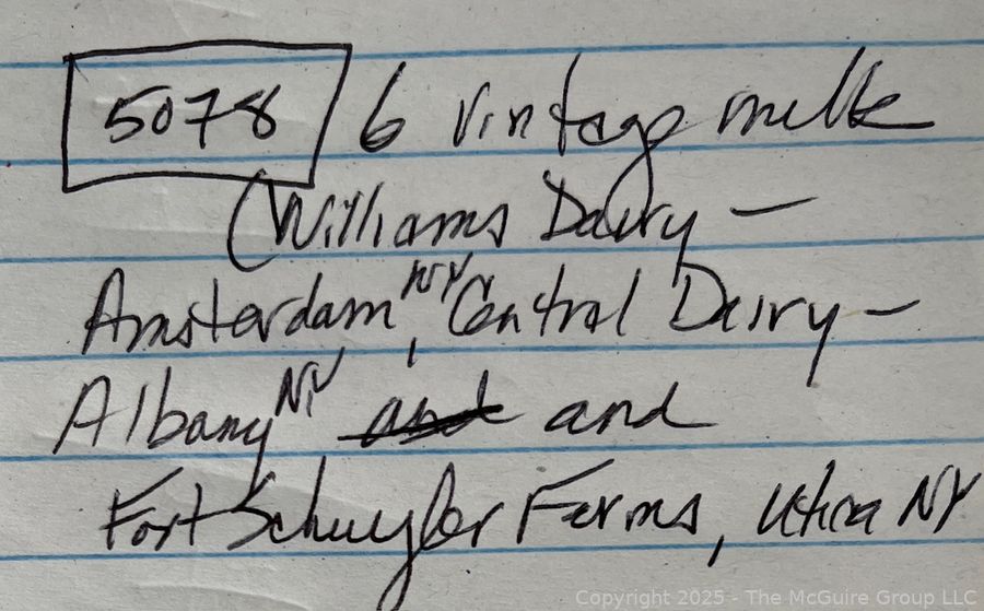 Lot #5078RM: Seven (7) Milk and Cream Bottles Including William's, Amsterdam, Central and Fort Schuyler