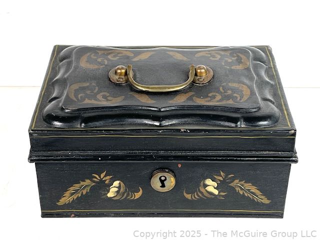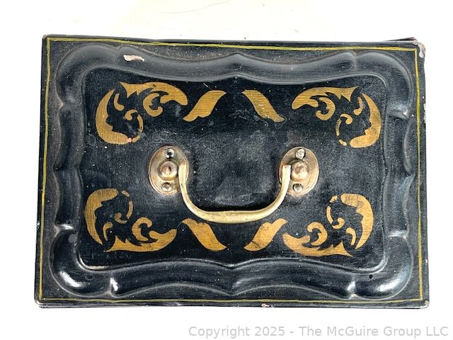 Lot #1165RM: Toleware Tin Covered Container w/ Handle