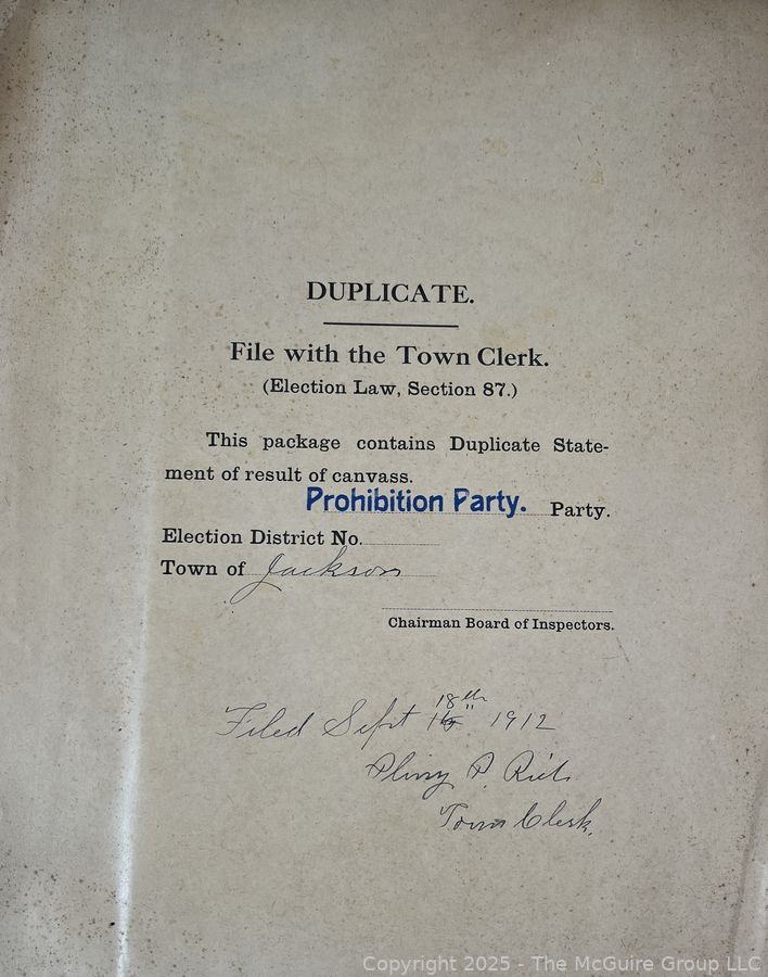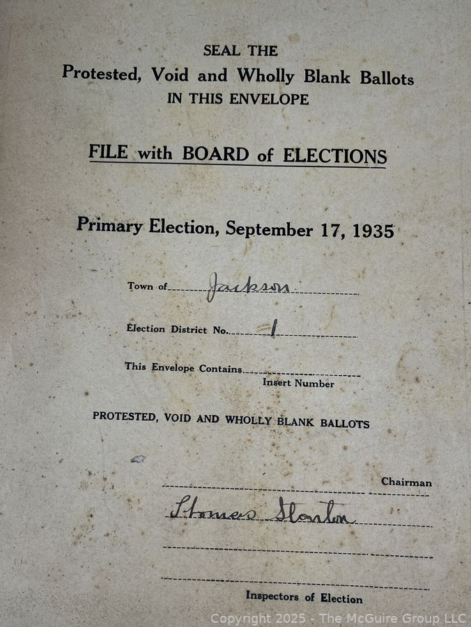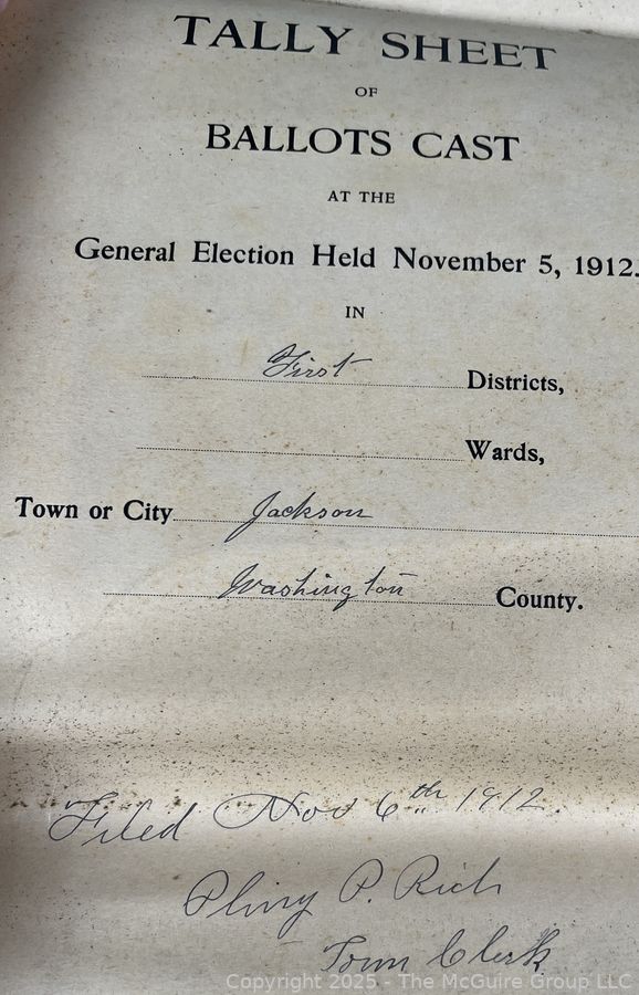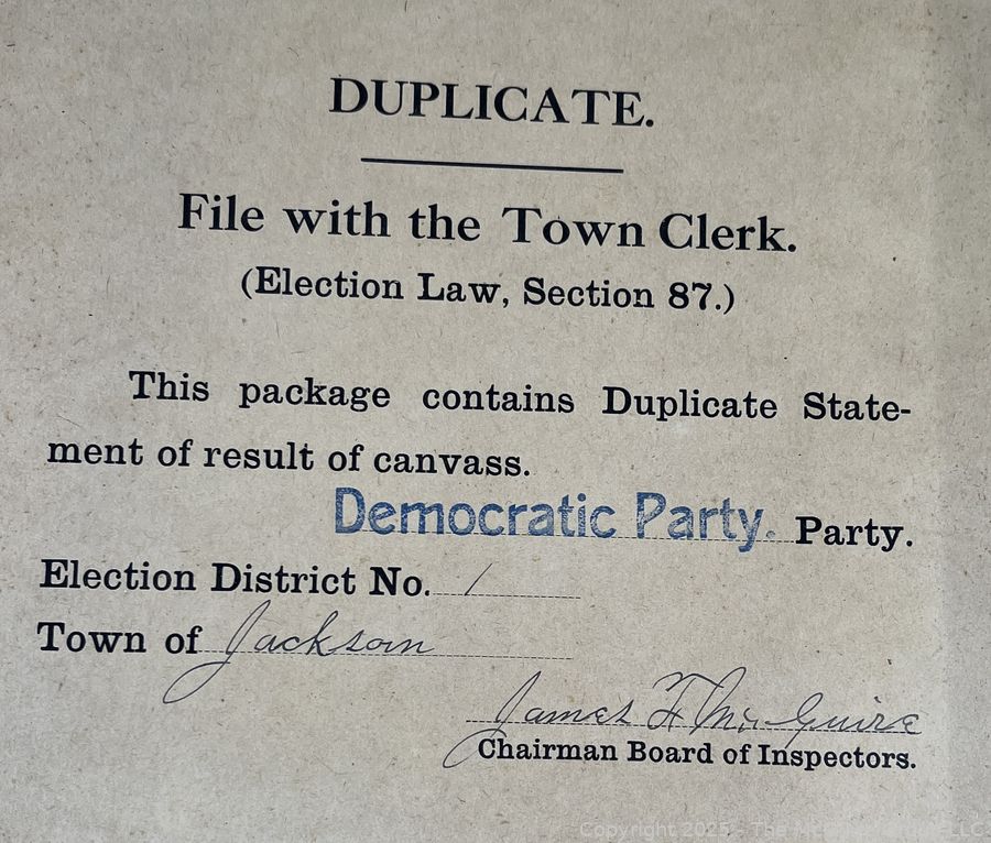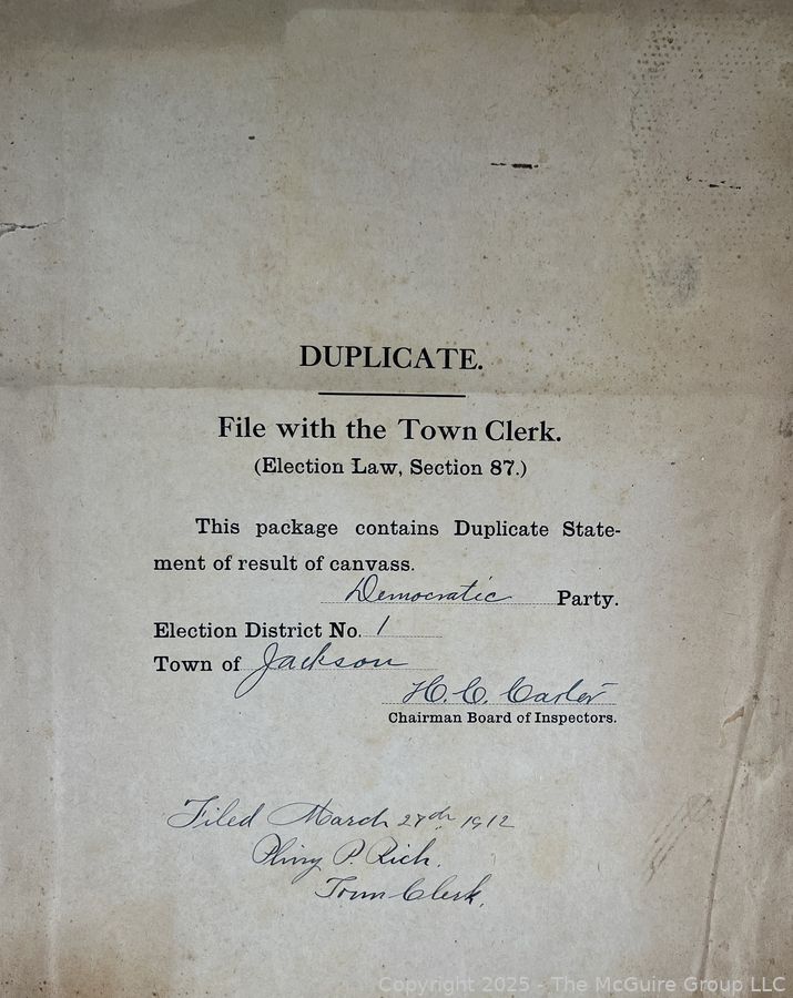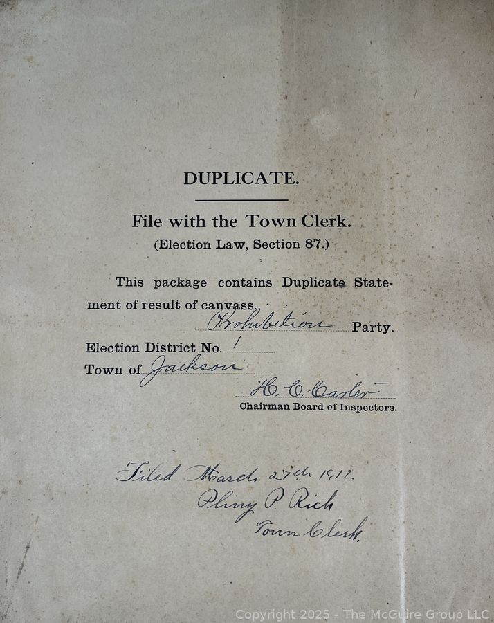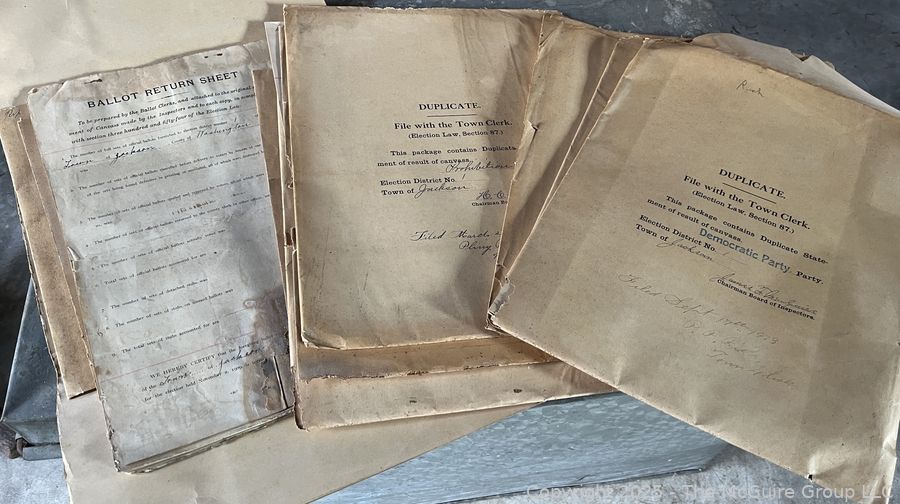 Lot #1337RM: Town of Jackson NY 17 x 18 x 26 Galvanized Election Box and Duplicate Records Circa 1910-20. See All the Photos in the Gallery