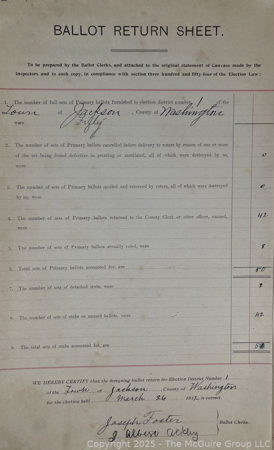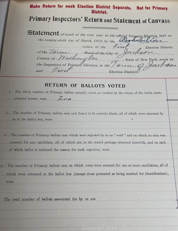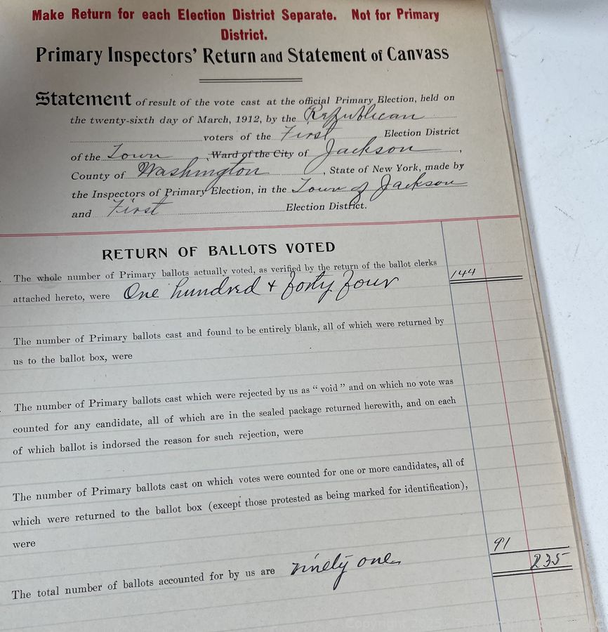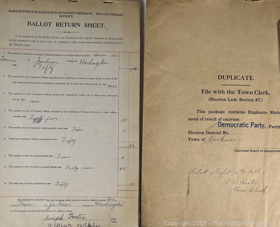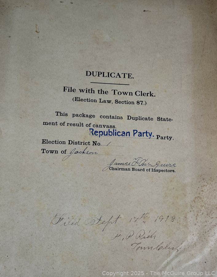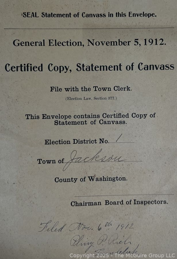 Lot #1337RM: Town of Jackson NY 17 x 18 x 26 Galvanized Election Box and Duplicate Records Circa 1910-20. See All the Photos in the Gallery