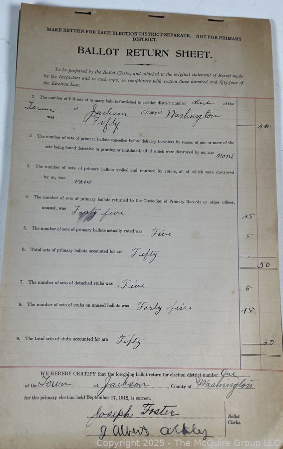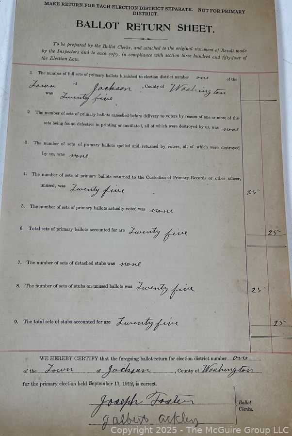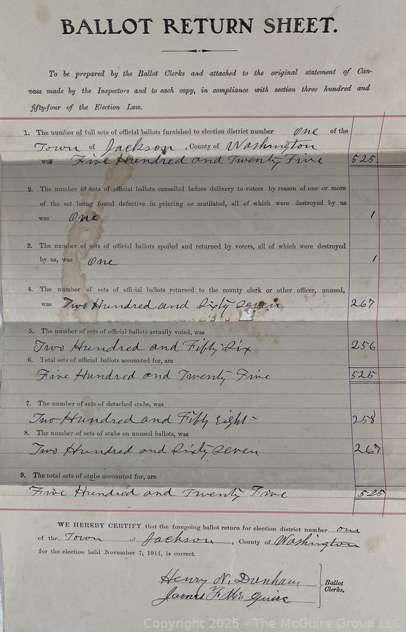 The McGuire Group, LLC encourages all bidders to inspect lots in person before bidding. The McGuire Group, LLC is not responsible for incorrect listing information, if any. The McGuire Group, LLC has attempted to provide accurate descriptions of all items, however, it is the bidders responsibility to determine the condition and suitability of each lot. Printed statements or descriptions by The McGuire Group, LLC staff are provided in good faith and are matters of opinion.