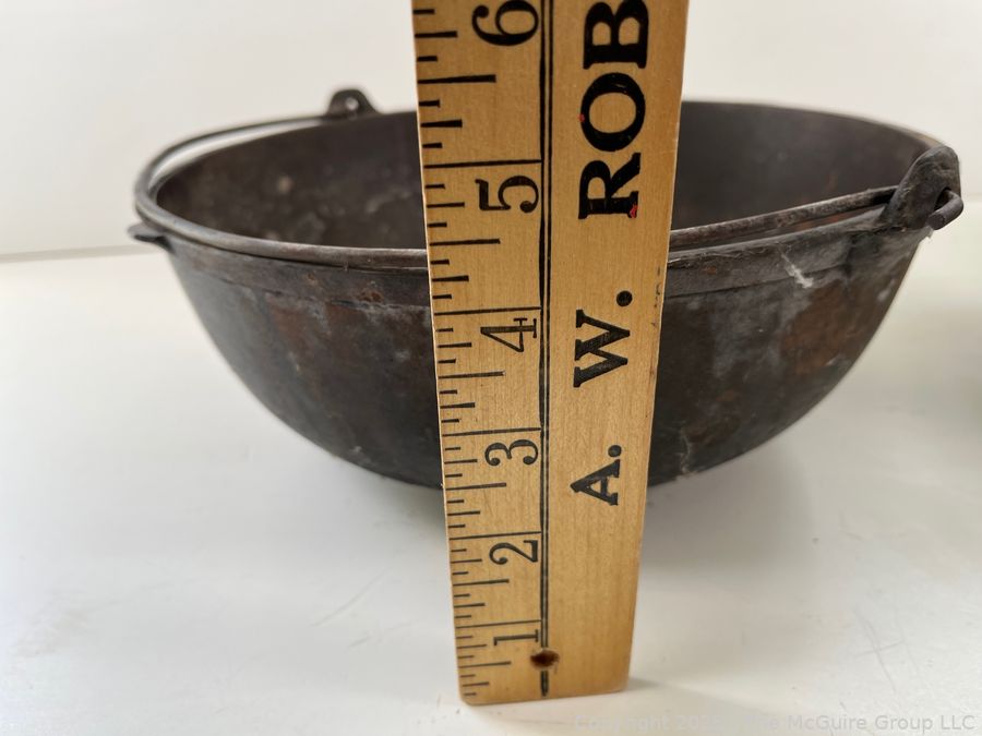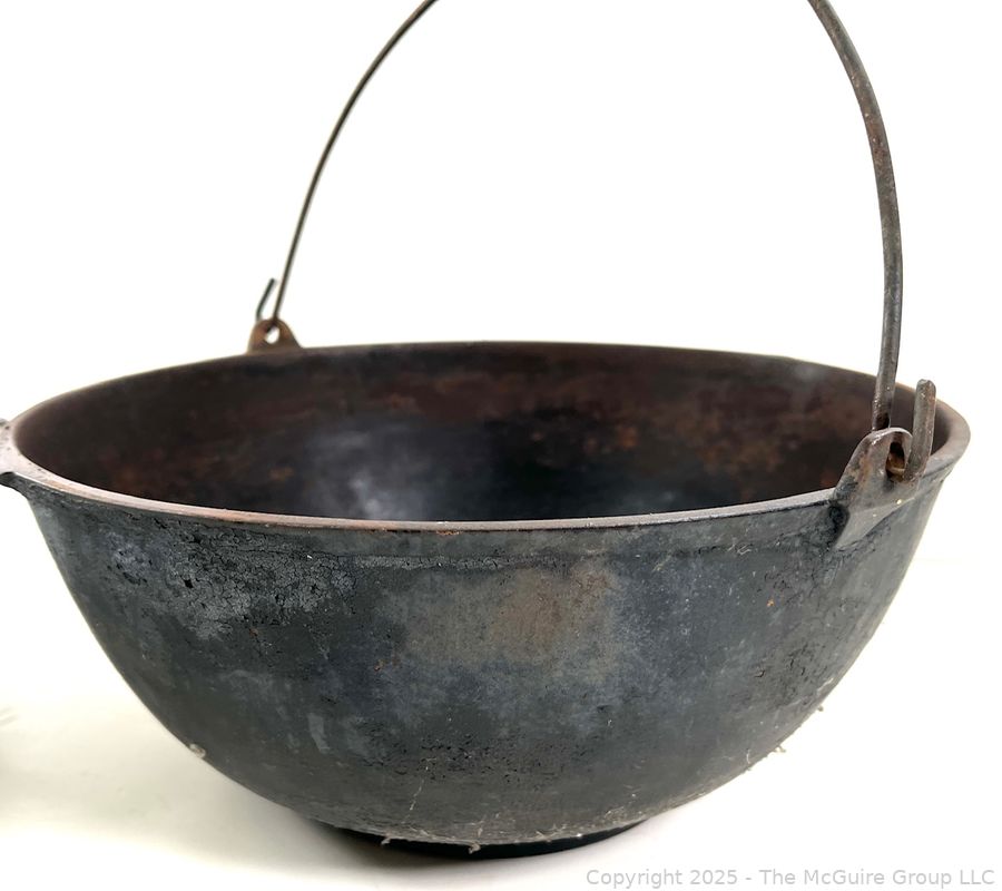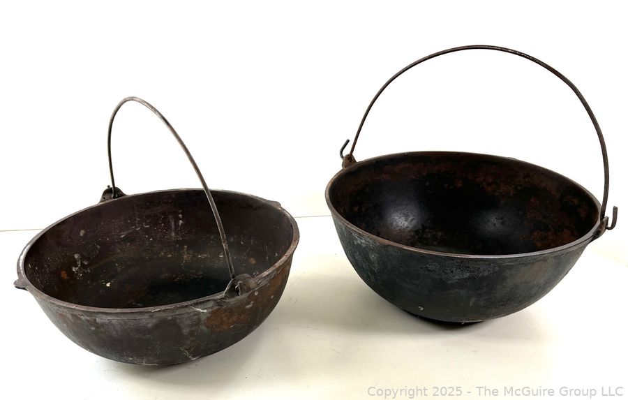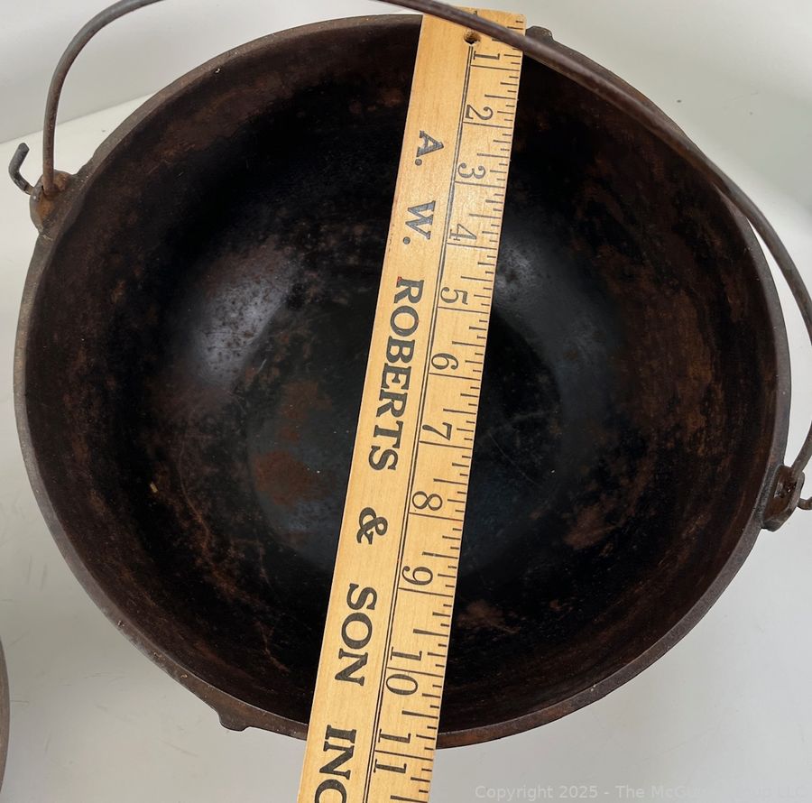 Lot #4022RM: Two (2) Cast Iron Pots w/ Wire Bales for Cooking or Possibly Lead Smelting