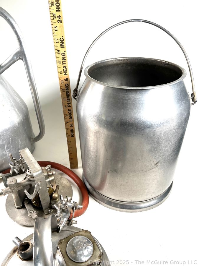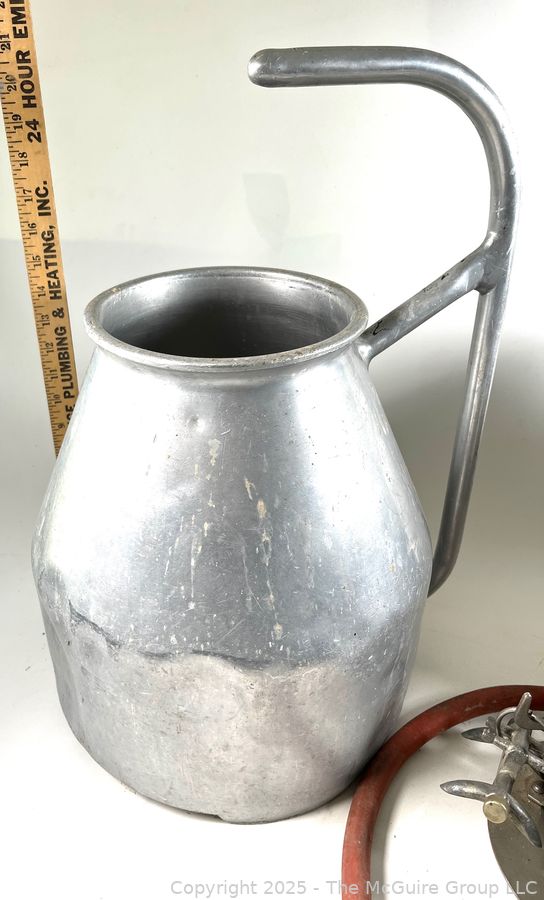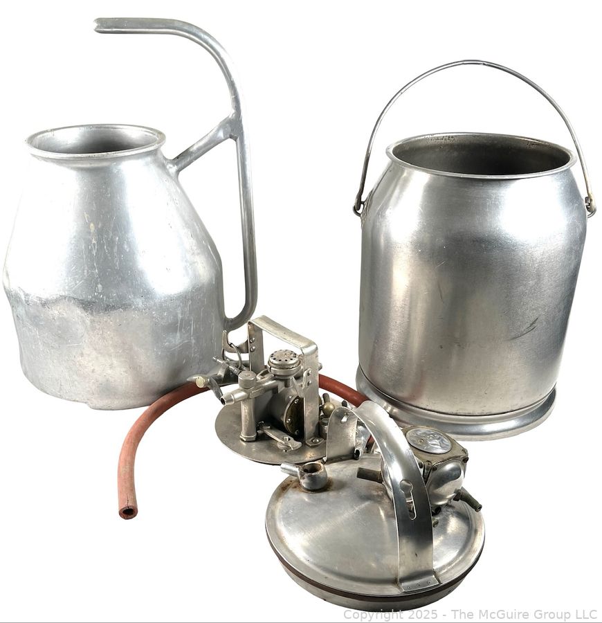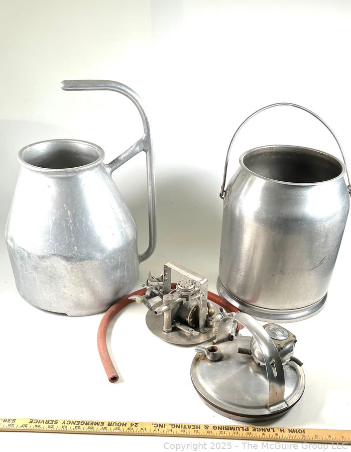 Lot #1357RM: Vintage Milking Equipment Including a Stainless Steel Milk Can and Components of an EMPIRE Milking Machine.