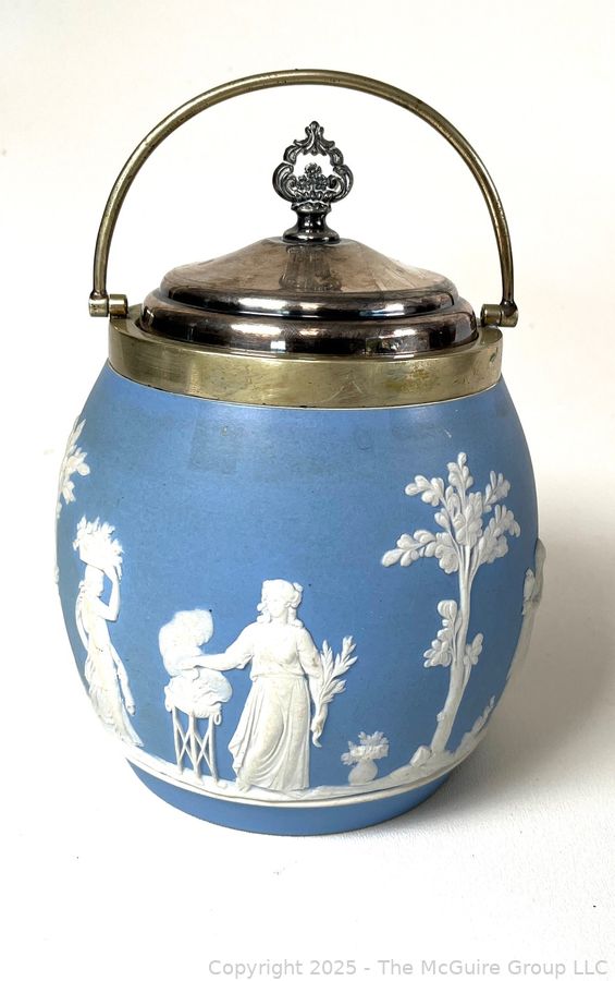 Lot #5100RM: Wedgwood Jasperware Blue Biscuit Barrel Jar
