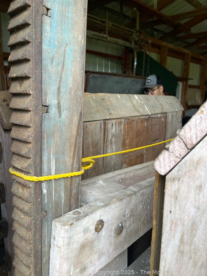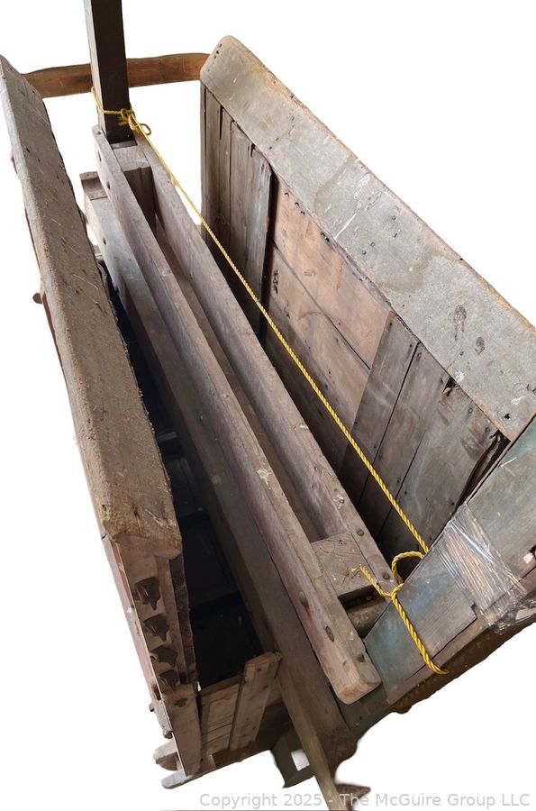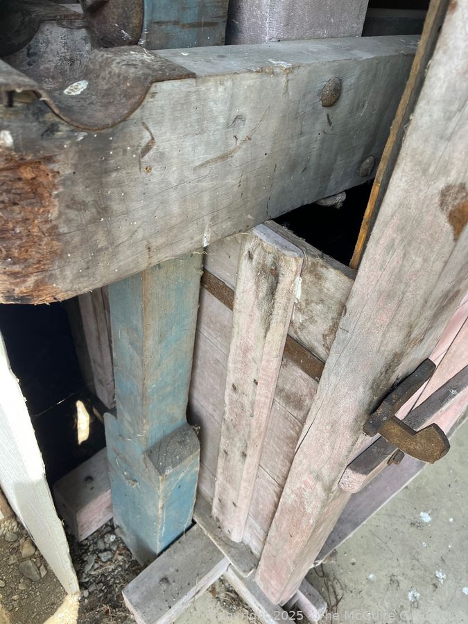 Lot #4044RM: Wooden Sheep Stanchion with Original Stenciling Mid 19th C H. D Babcock Leonardsville NY