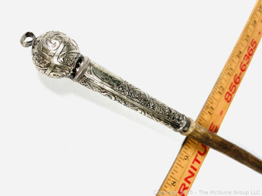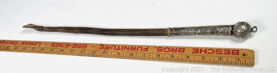 Lot #0344CP: Braided Leather with Embossed Handle Equestrian Riding Crop, Made in Brazil. 19"