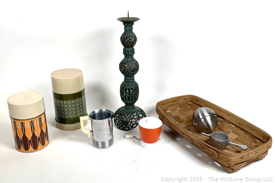 Lot #0283PB: Candle Stick, Basket, Thermoses and Kitchen Tools