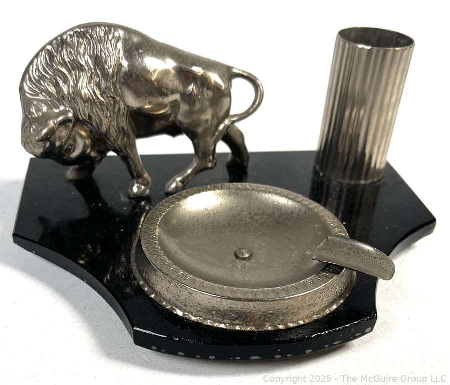 Lot #0109JK: Chrome Buffalo Ashtray Desk Set