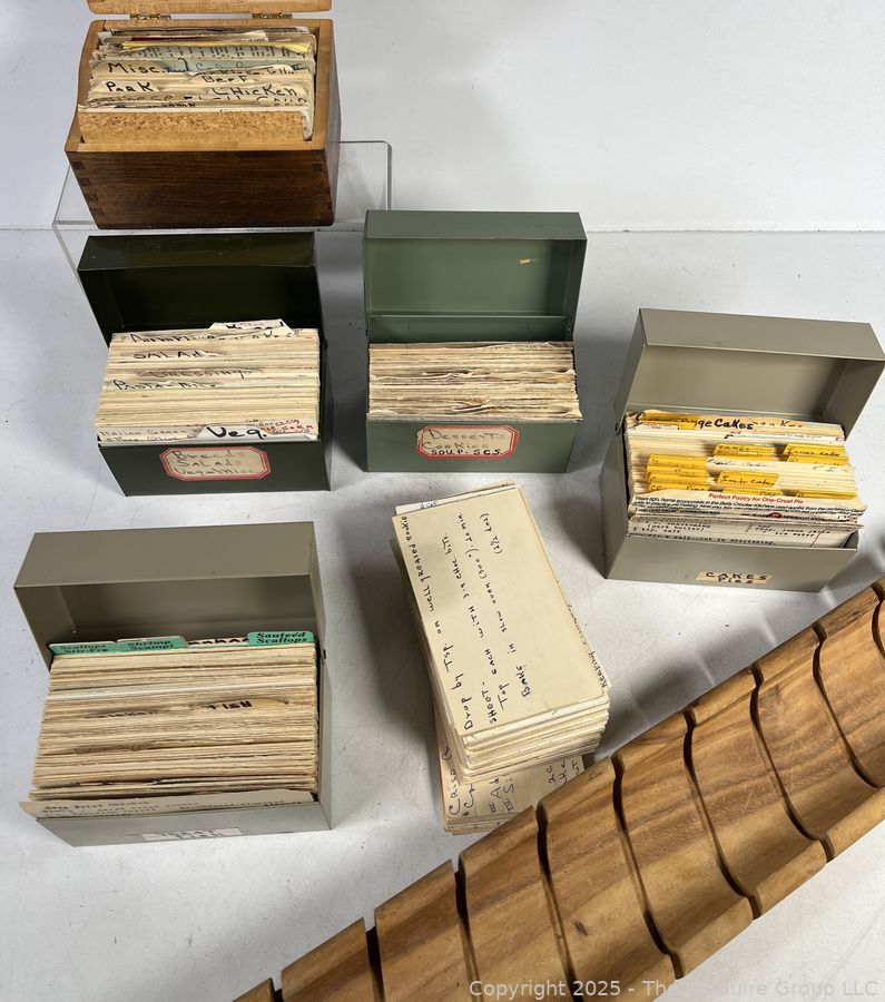 Lot #0175JK: Collection of Vintage Recipe Cards in Boxes with Wood French Bread Tray
