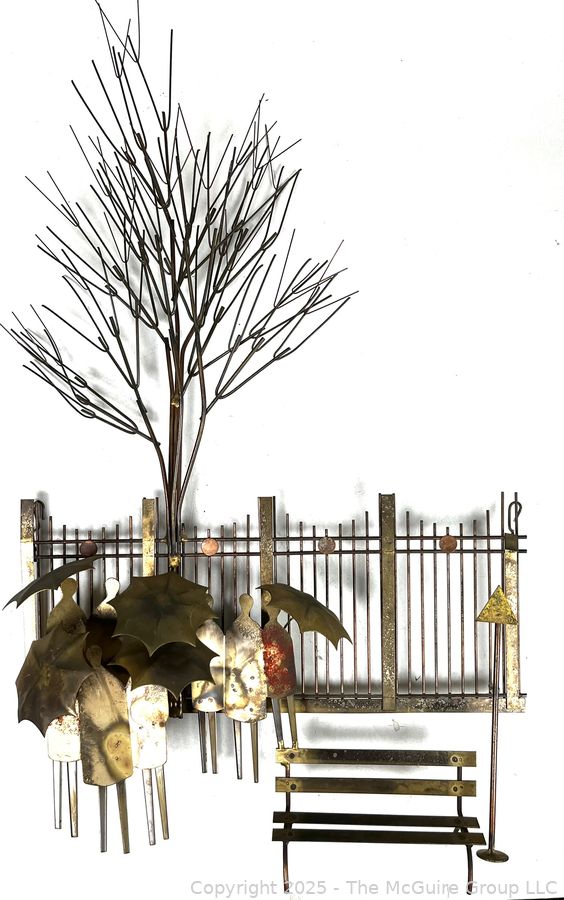 Lot #0089JK: Curtis Jere Rainy Day At Bus Stop Brass And Wire Wall Art Sculpture