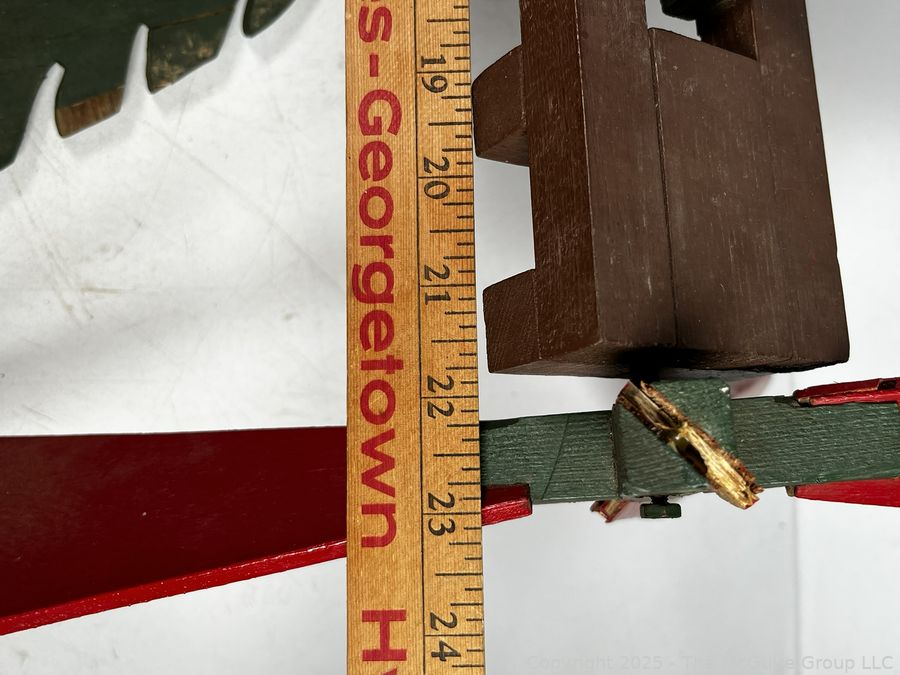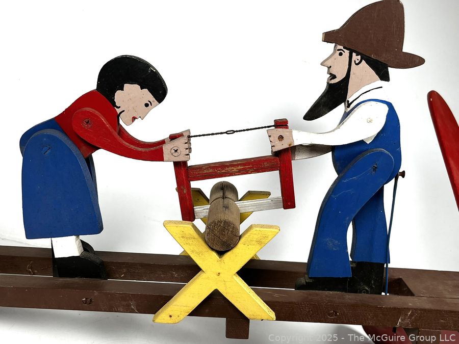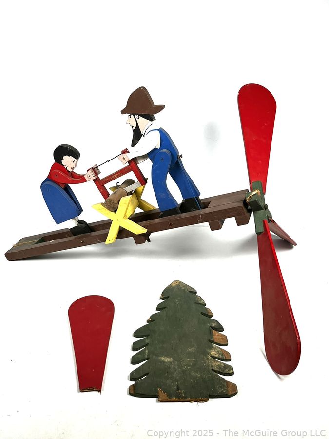 Lot #0123PB: Folk Art Whirligig Man & Woman Sawing Wood. Needs repair.