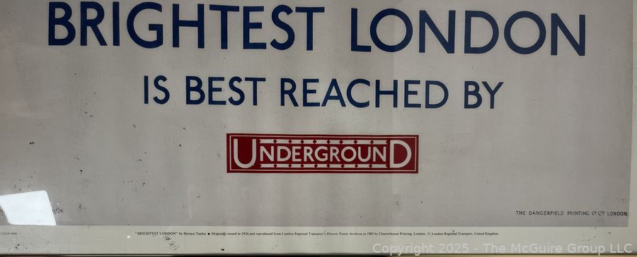 Lot #0296JK: Framed Under Glass Poster Print Brightest London is Best Reached by Underground